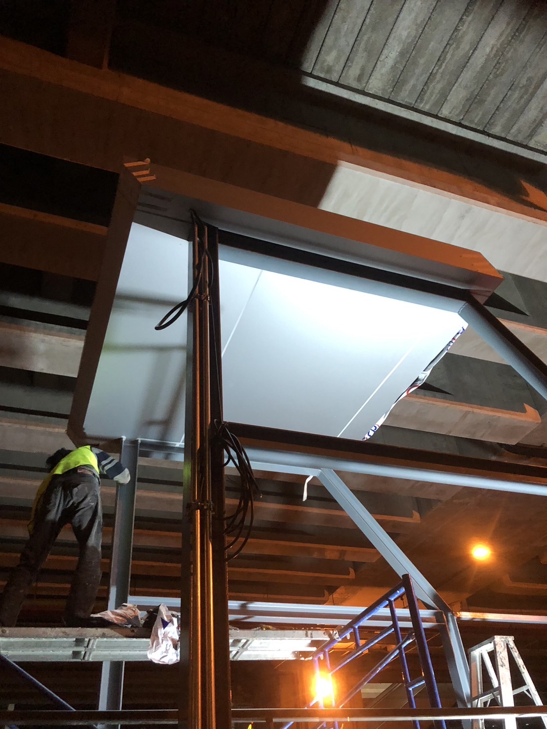 ติดตั้งโครงสร้างเหล็กหุ้มอะลูมีเนียมคอมโพสิต พร้อมส่งมอบงาน