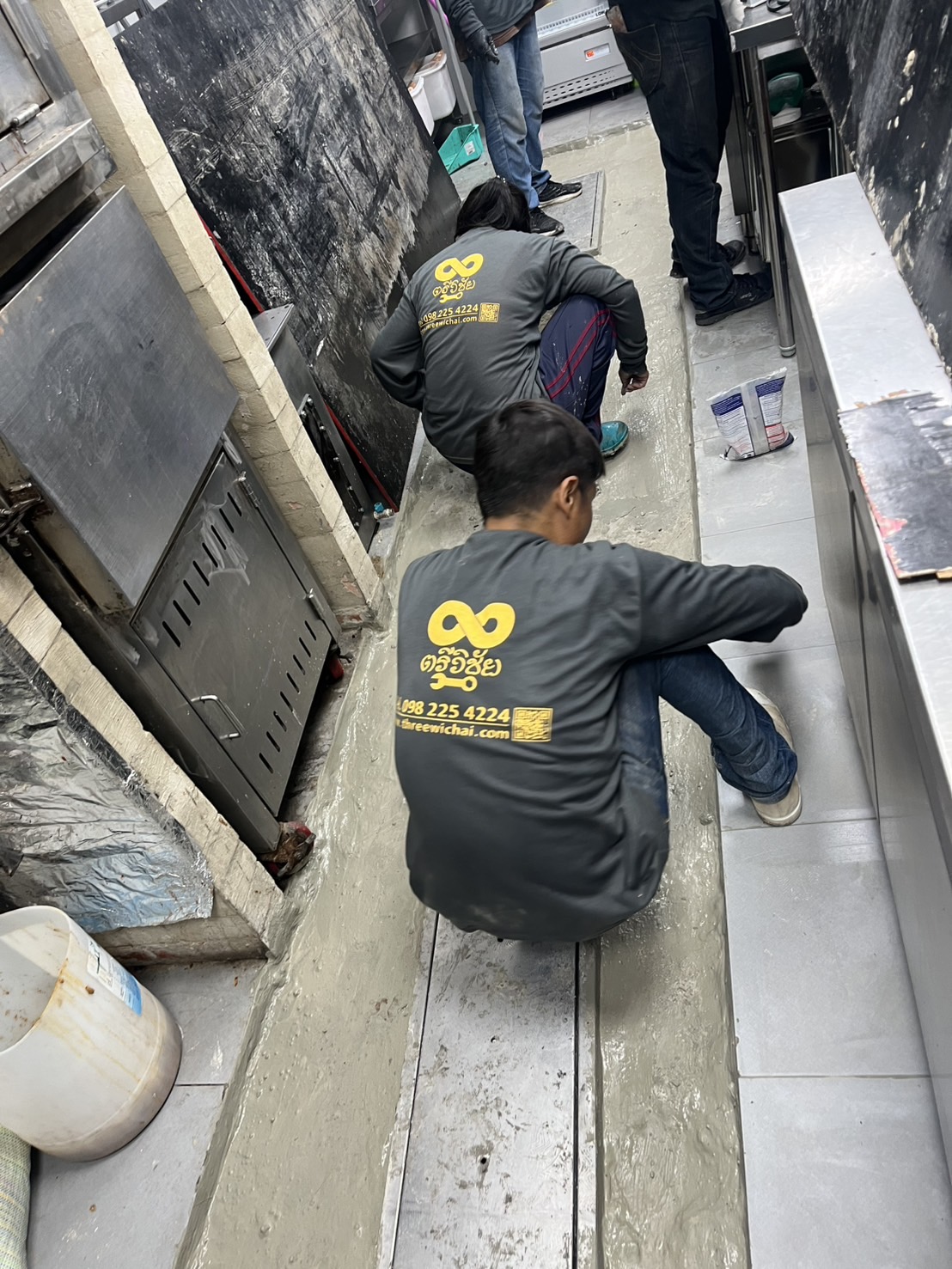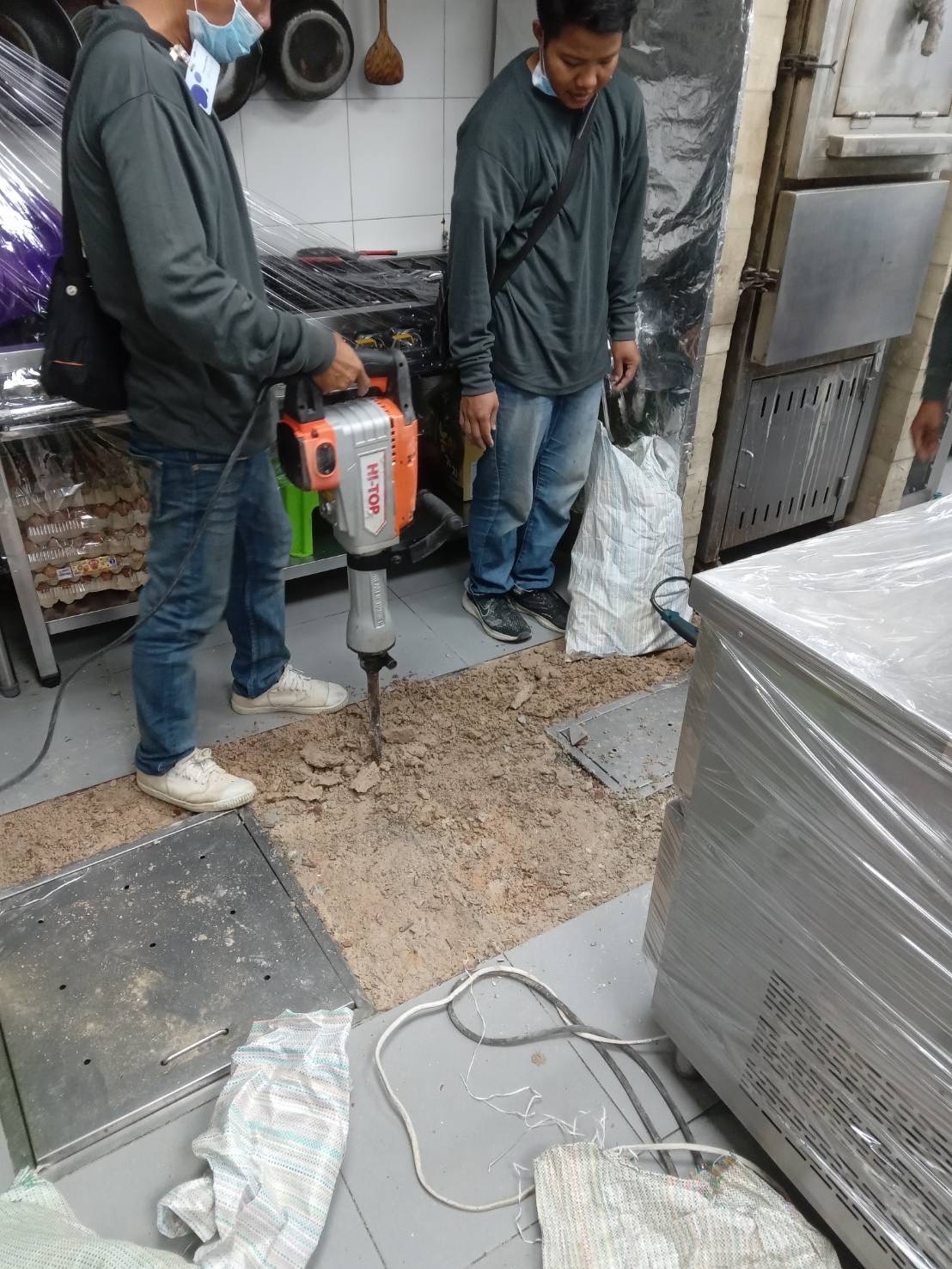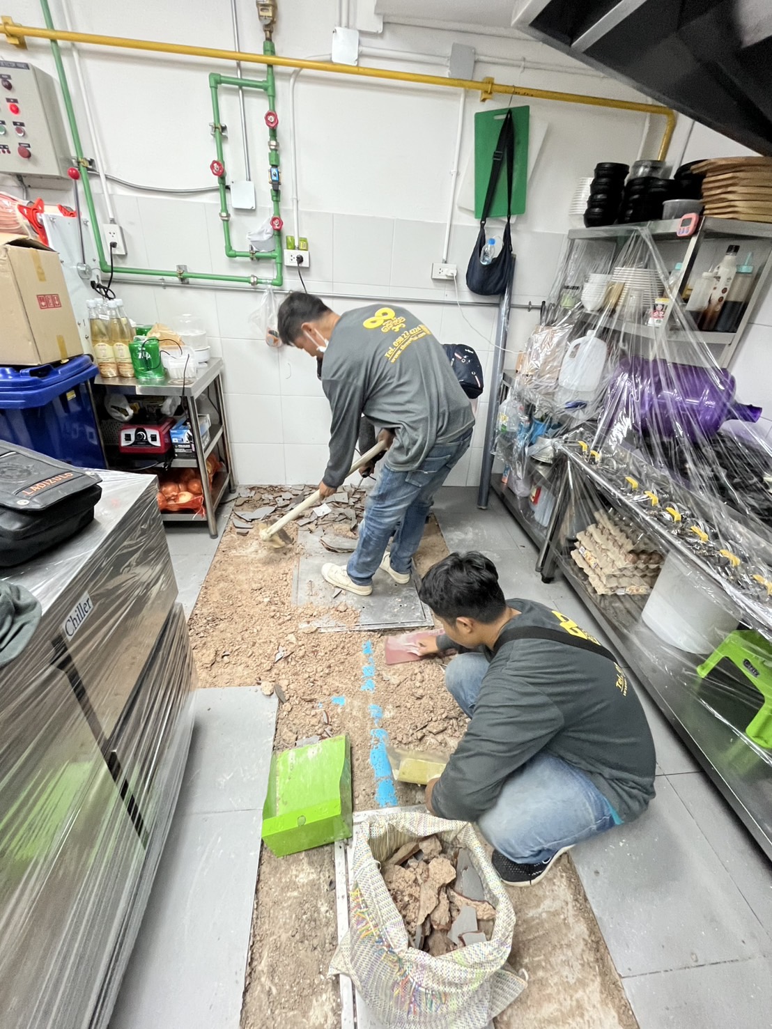 ซ่อมแซมพื้นครัวภายในร้าน หาพื้นที่การรั่วซึมของน้ำ