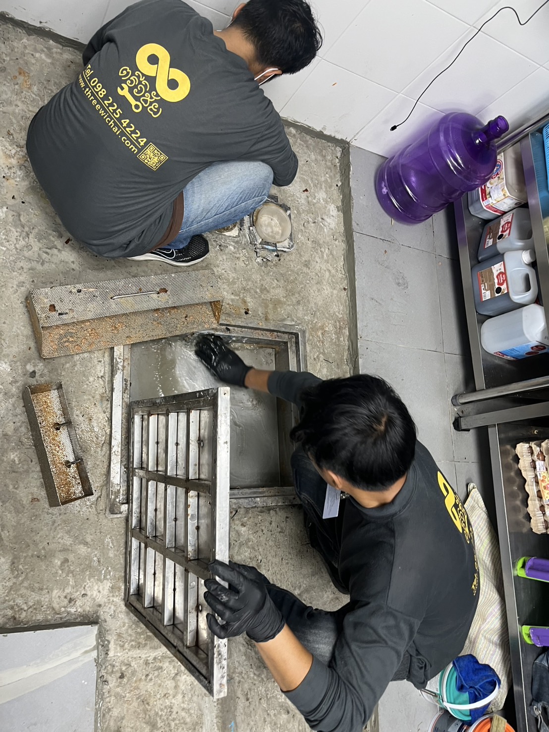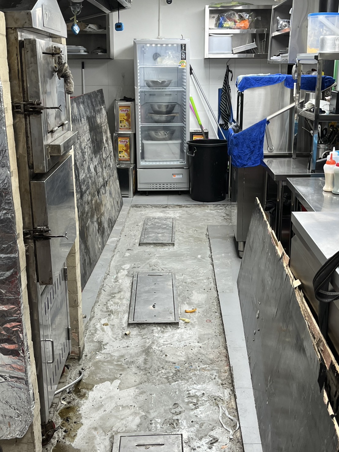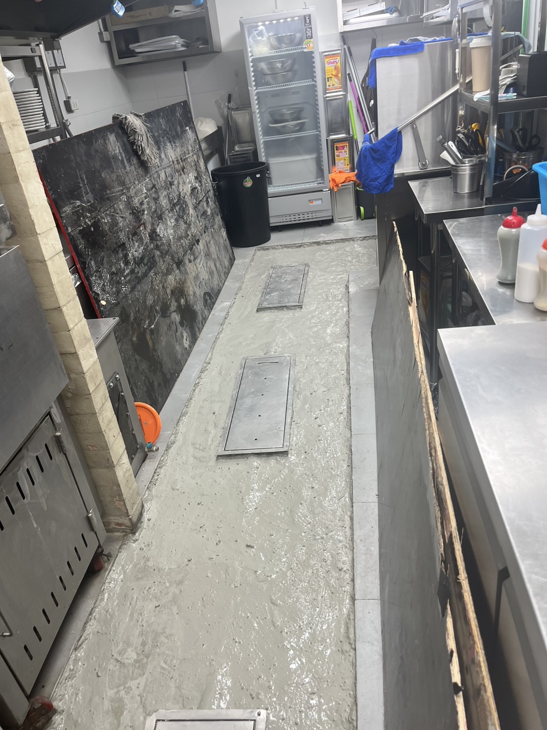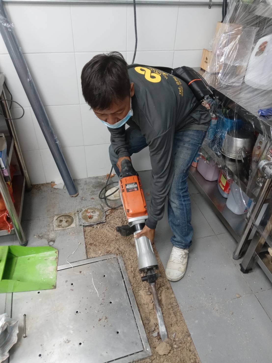 ซ่อมแซมพื้นครัวภายในร้าน หาพื้นที่การรั่วซึมของน้ำ