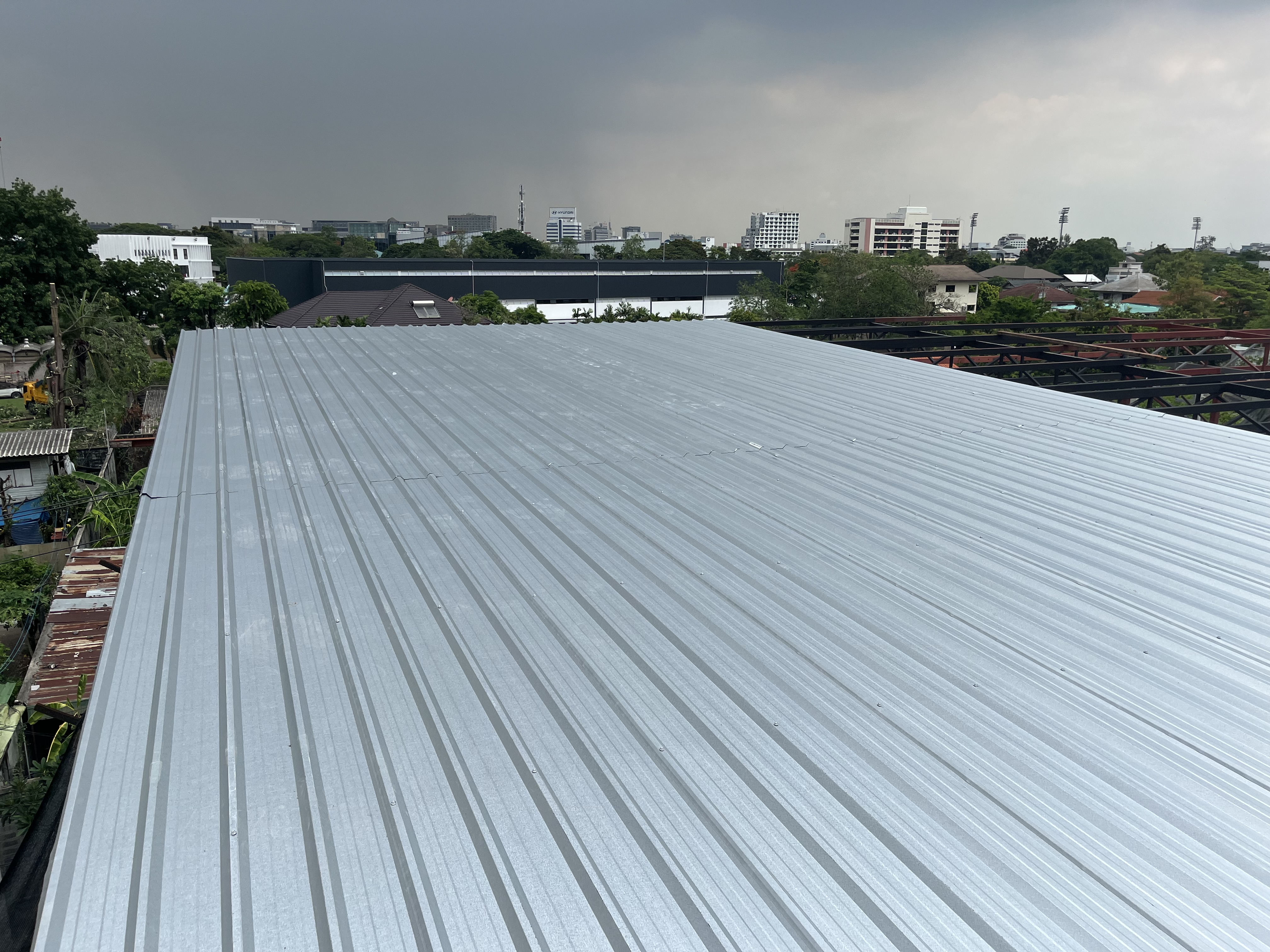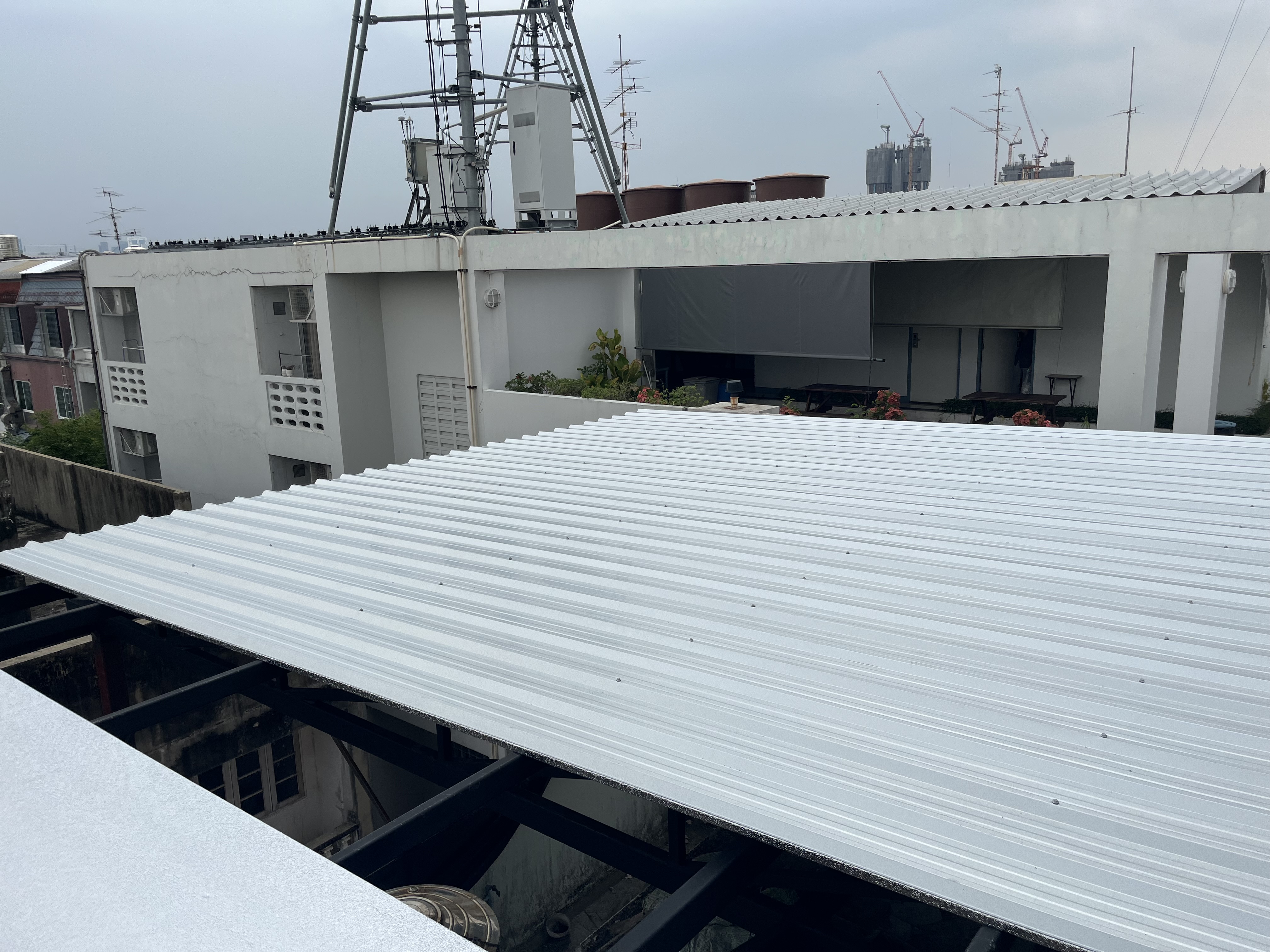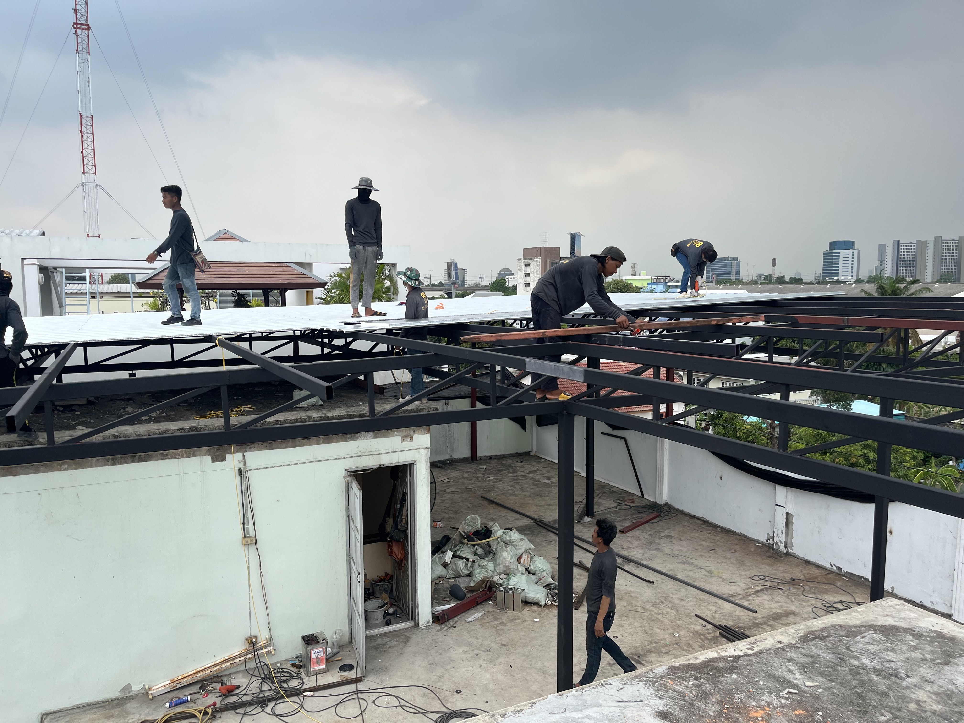 งานขึ้นโครงสร้างเหล็กรูปพรรณพร้อมมุงหลังคา เมทัลชีท pu1”