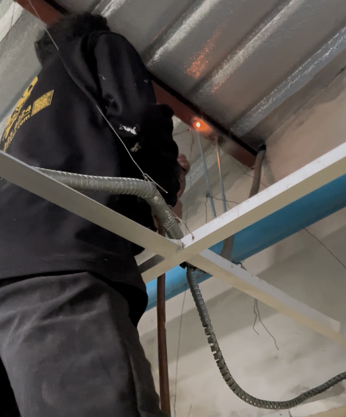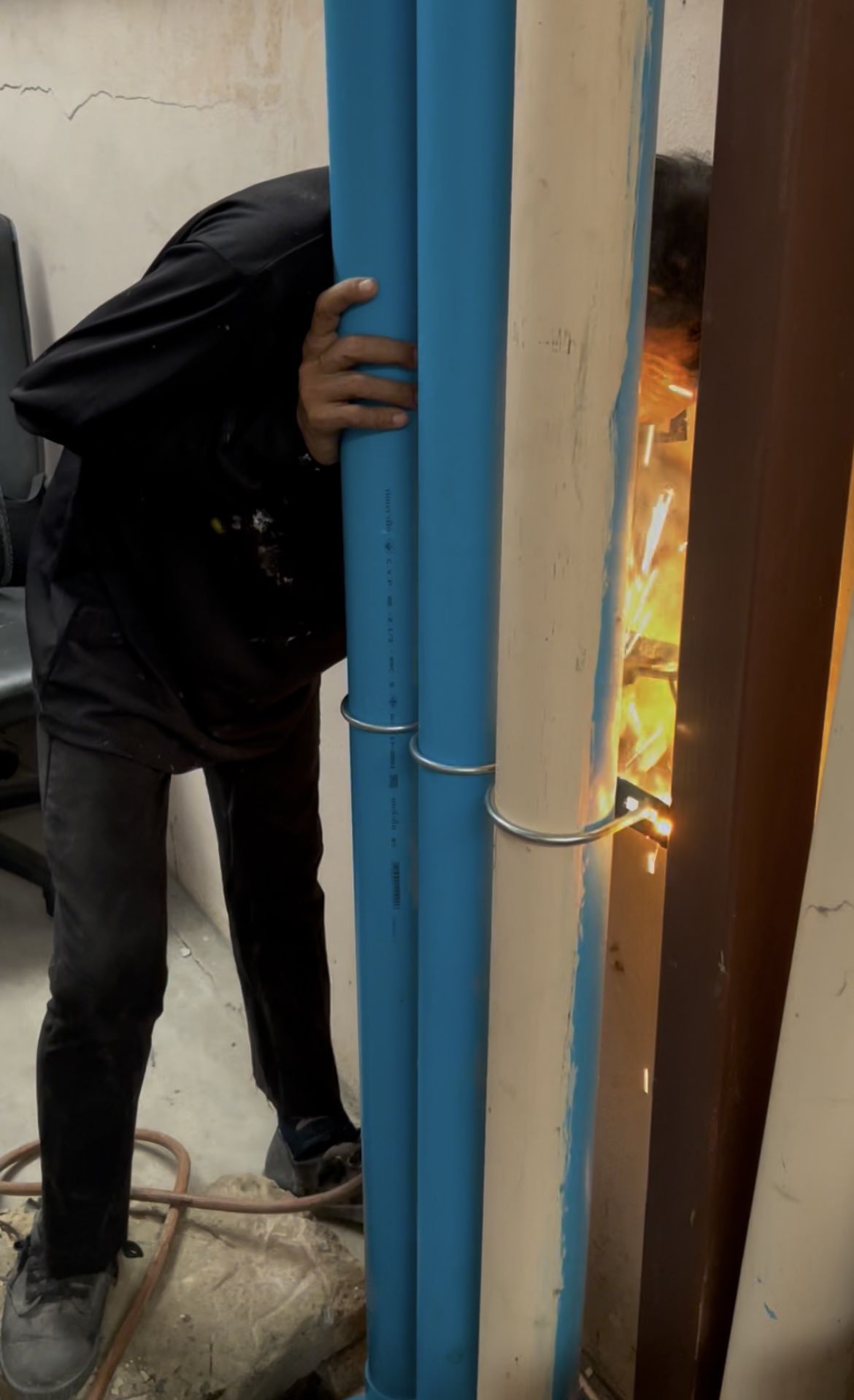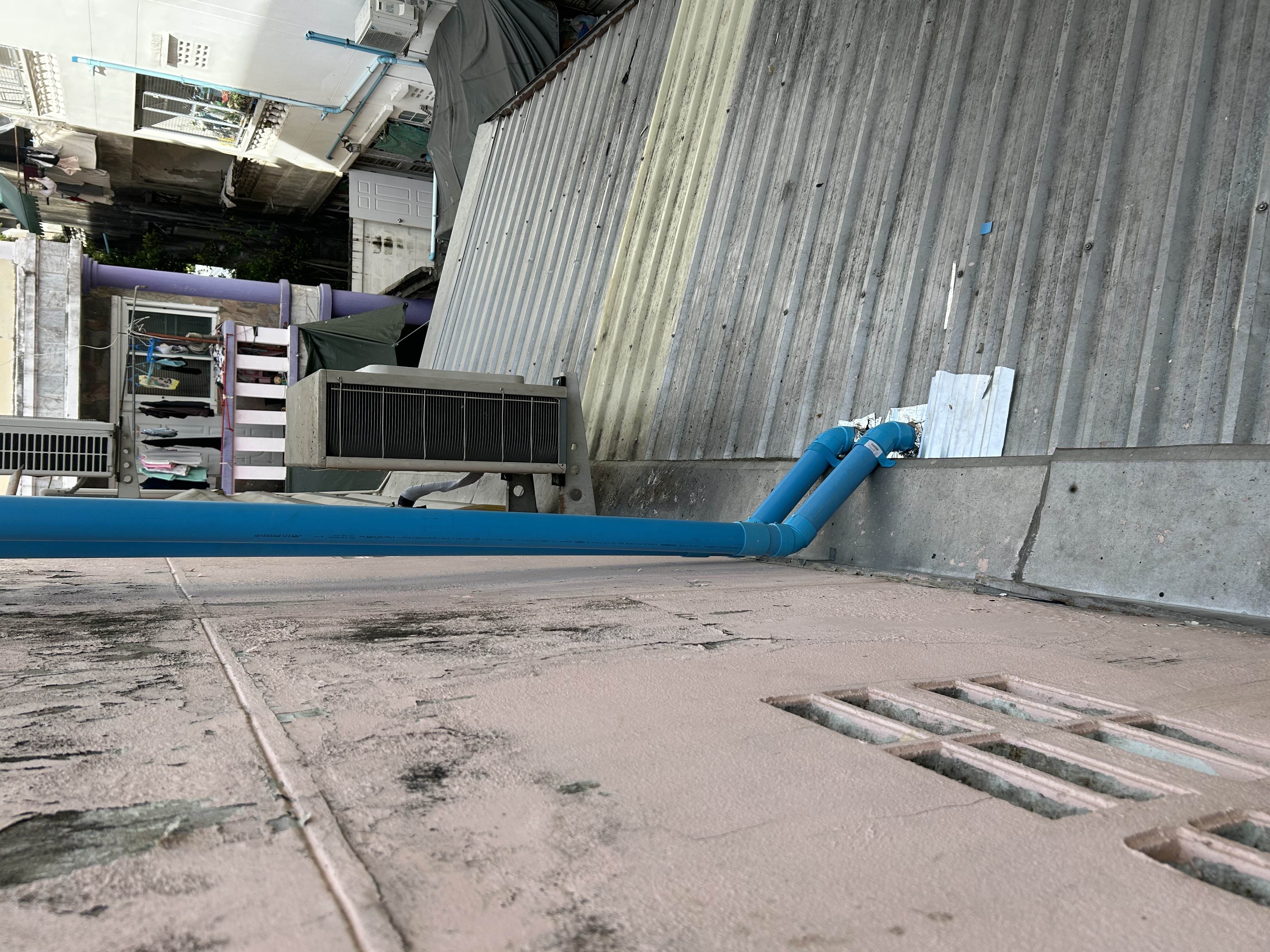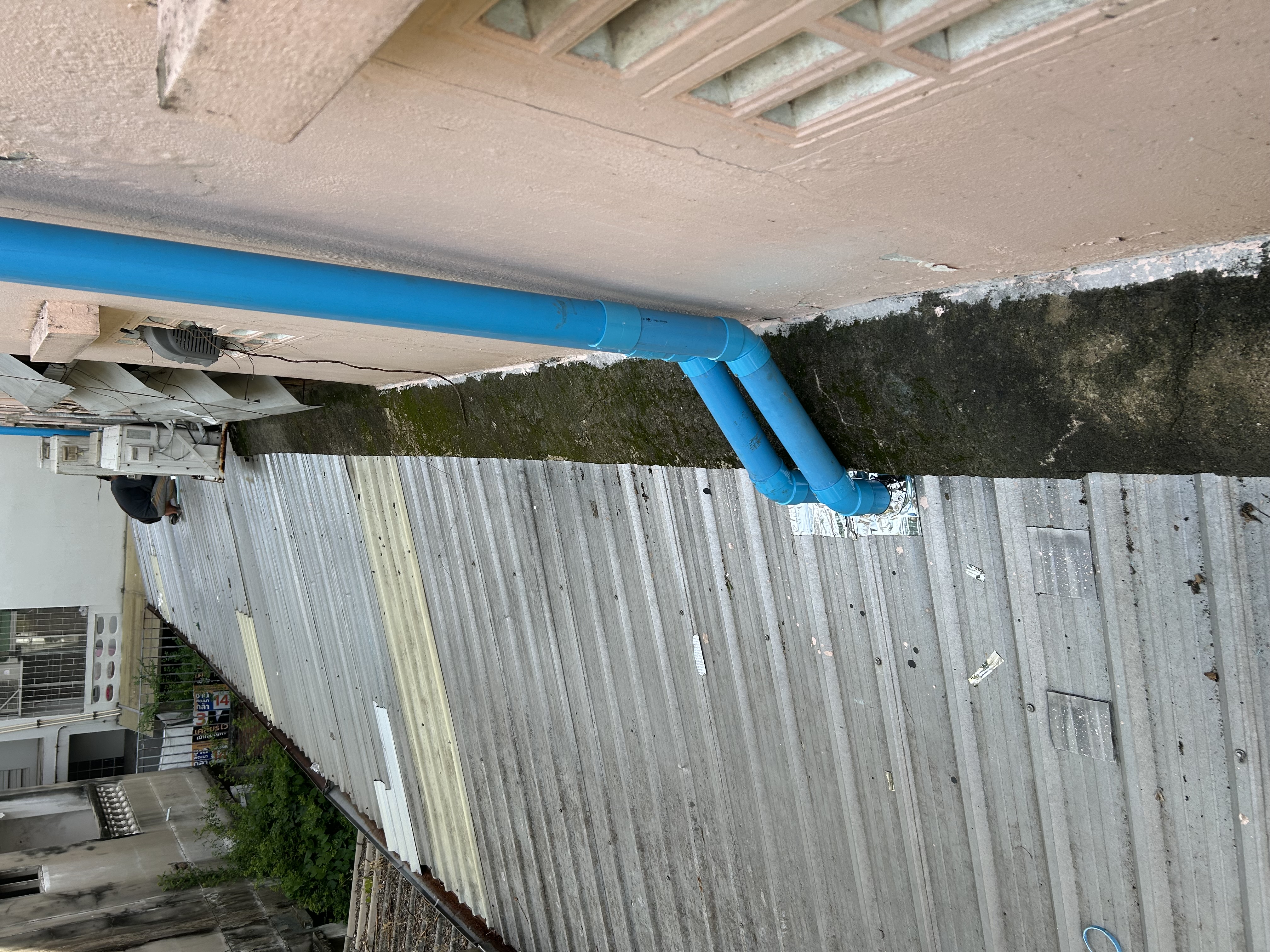 งานประกอบท่อน้ำทิ้ง เชื่อมต่องานโครงสร้างหลังคา