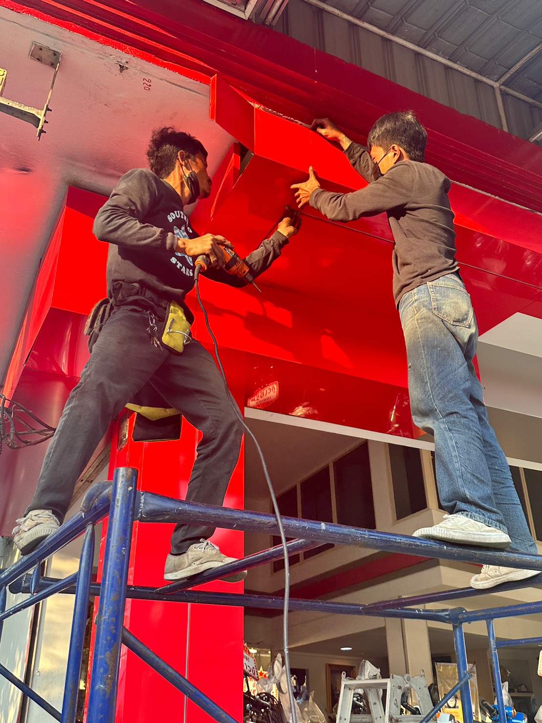 จัดสร้างโครงเหล็กติดฝ้าเพดานหน้าร้านจัดจำหน่ายสินค้า