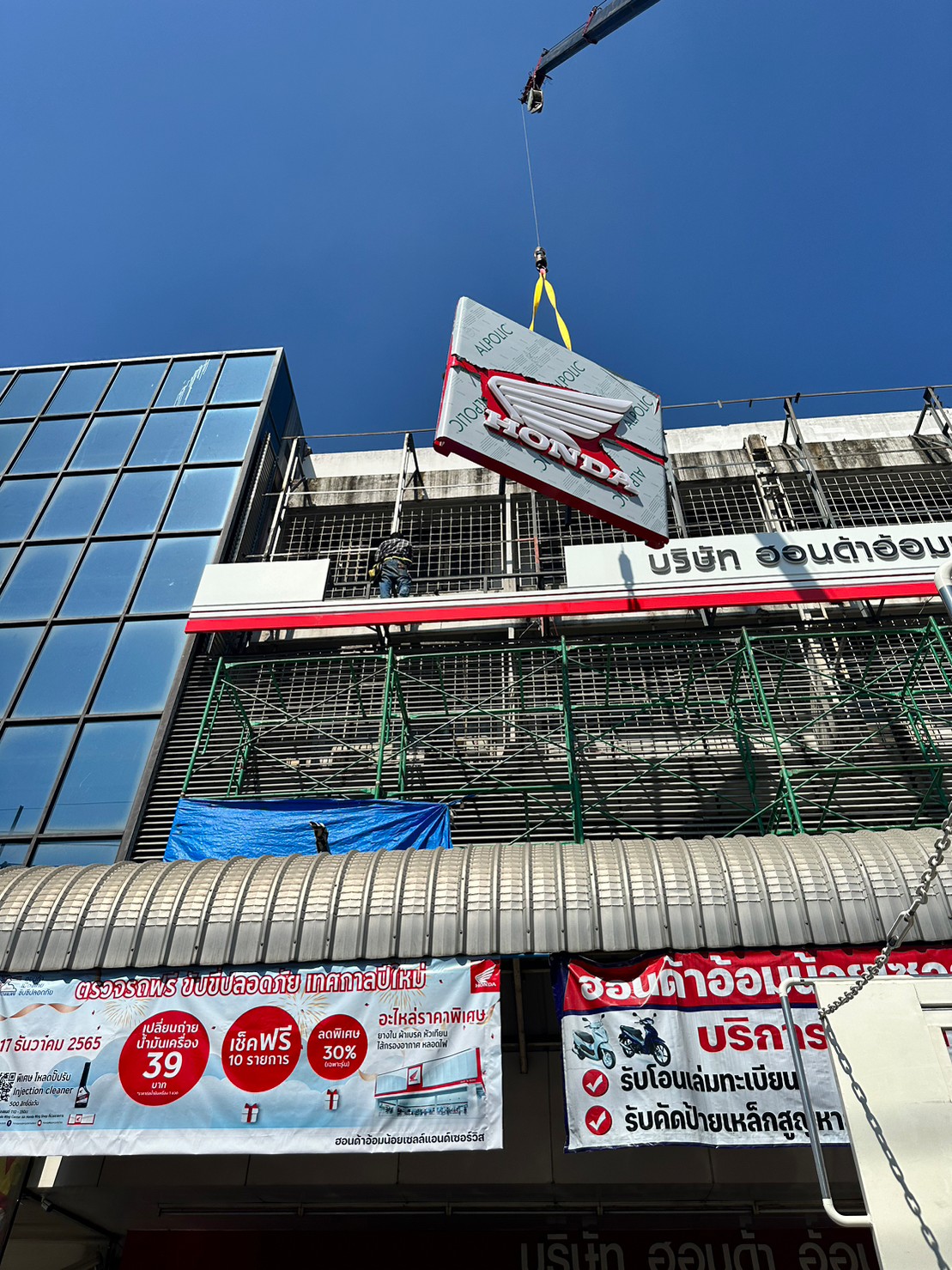 ติดตั้งป้ายไฟ โชว์รูมมอร์เตอร์ไซต์บริษัทฮอนด้า