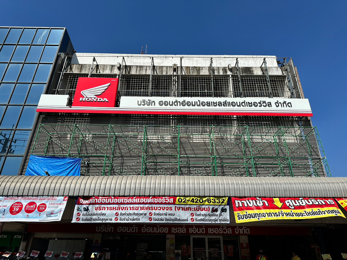 งานติดตั้งป้ายไฟ โชว์รูมมอร์เตอร์ไซต์บริษัทฮอนด้า สาขาอ้อมน้อย