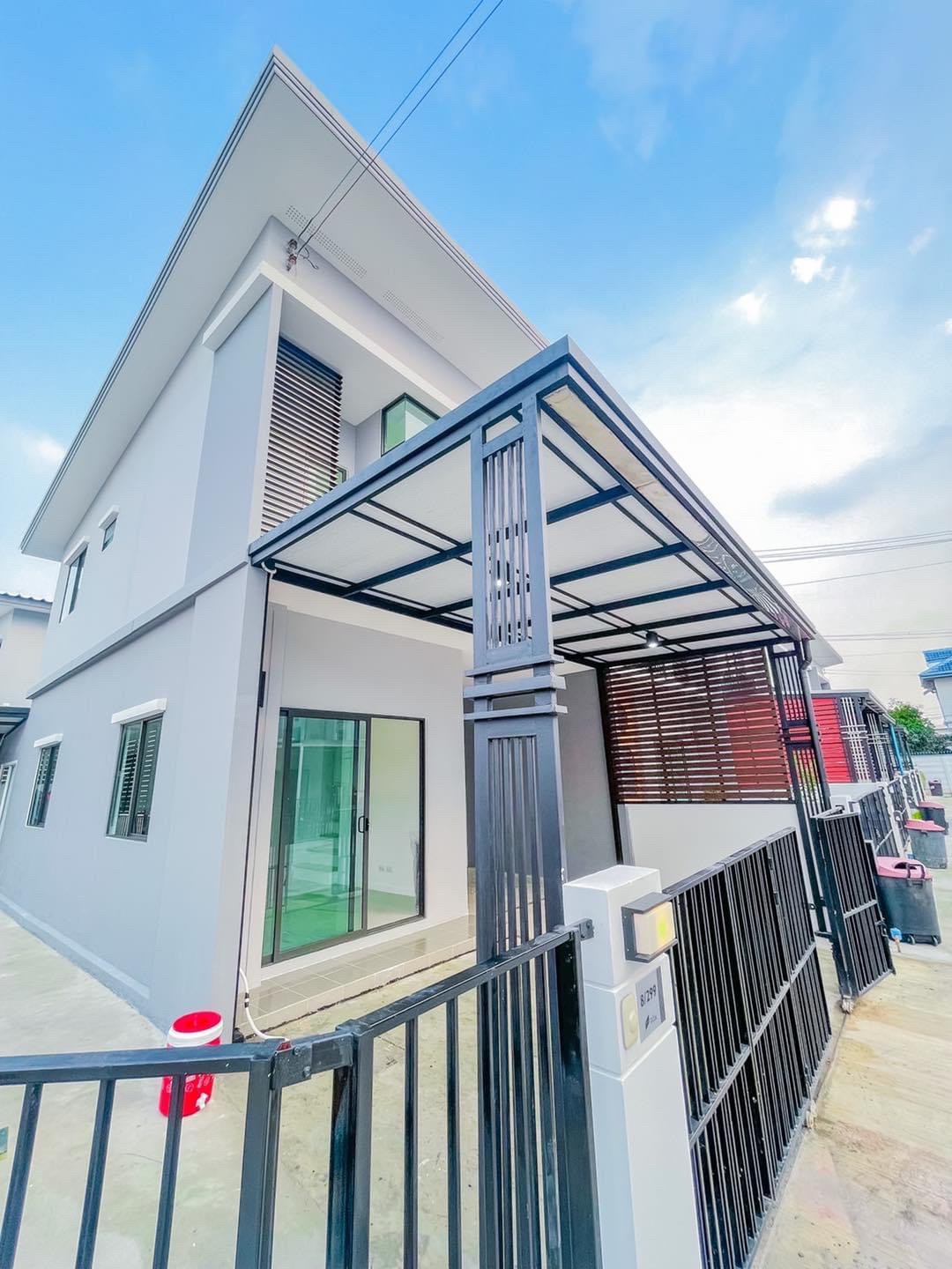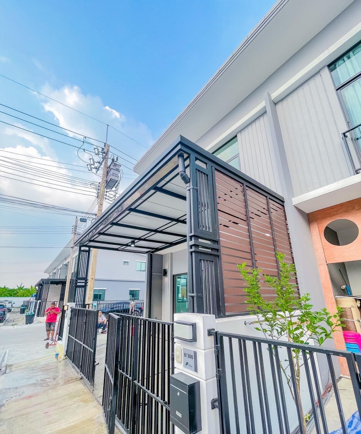 งานสร้างโครงหลังคาที่จอดรถ หน้าบ้าน