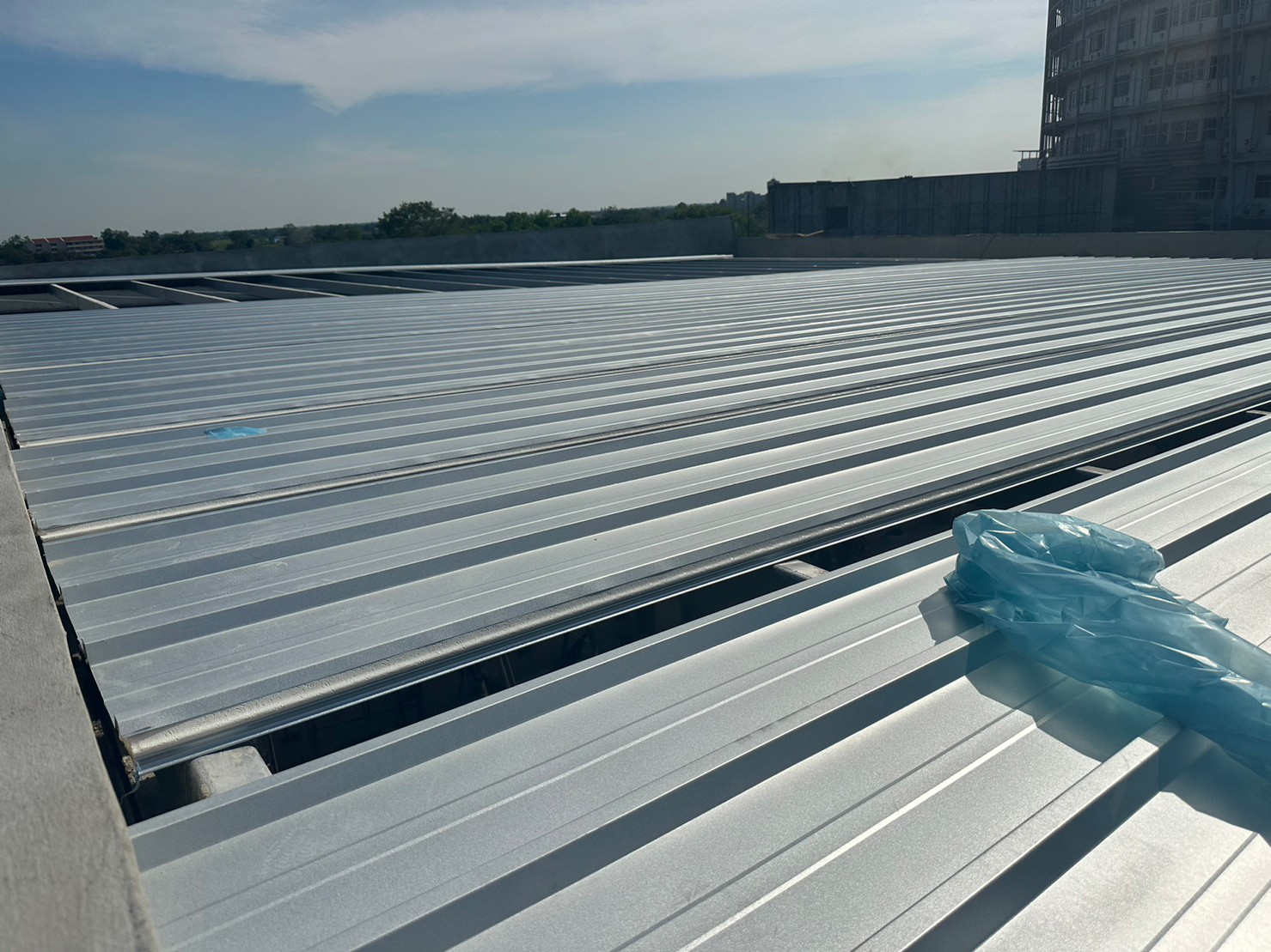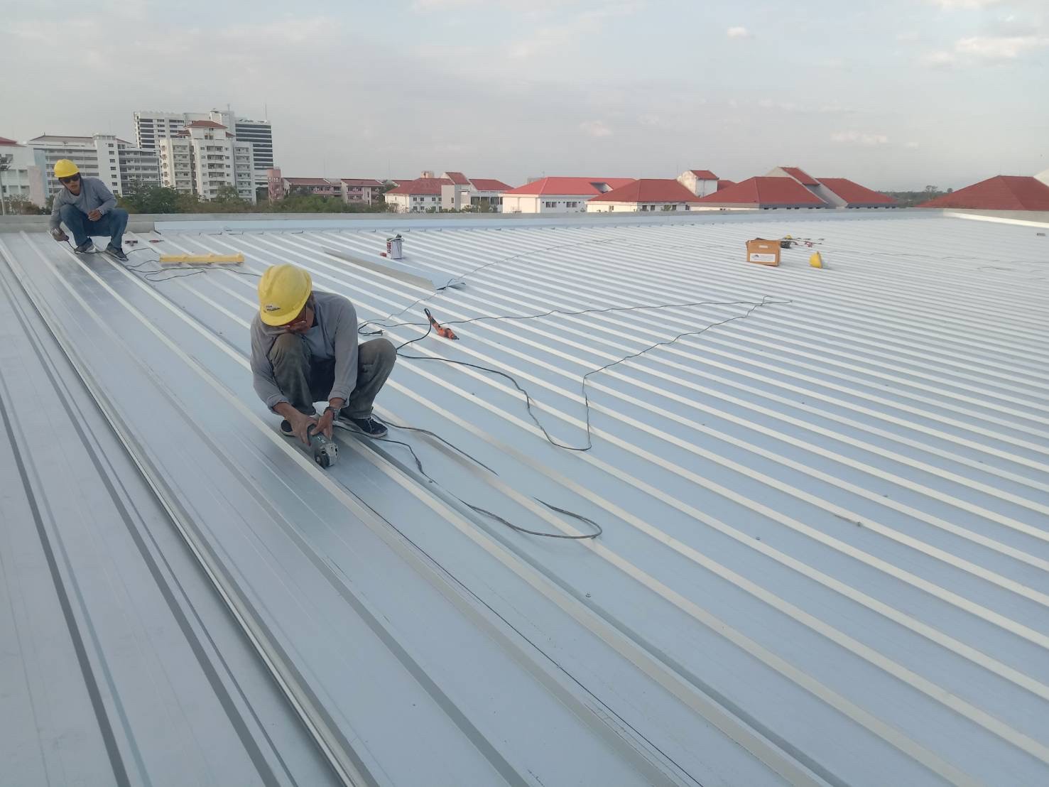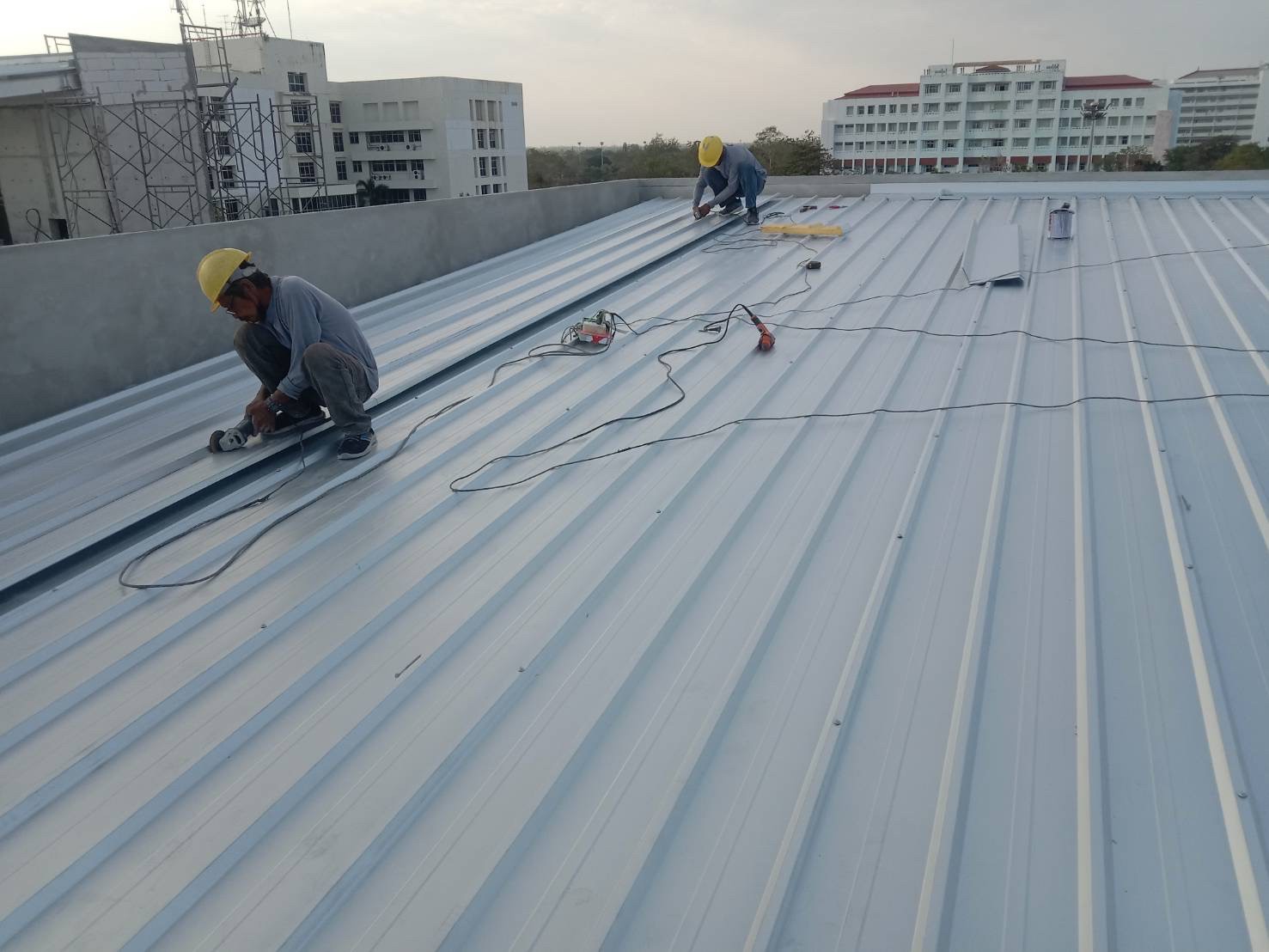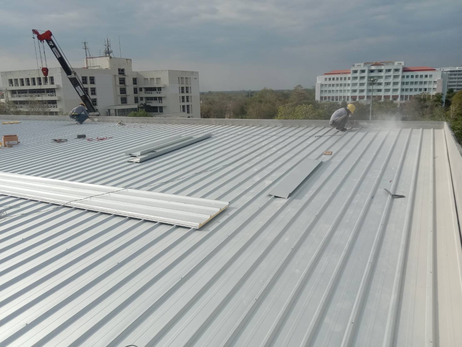 งานมุงหลังคาสังกะสีรองโฟม 350 ตร.ม. หน้างาน มศว.องค์รักษ์