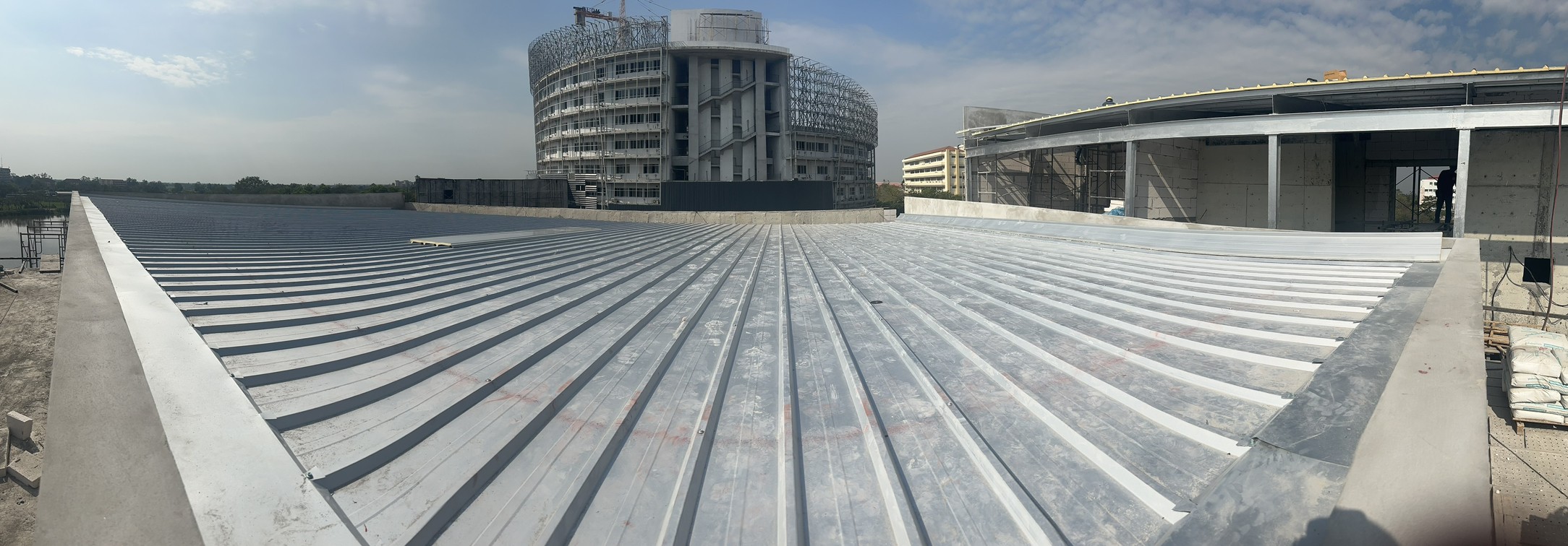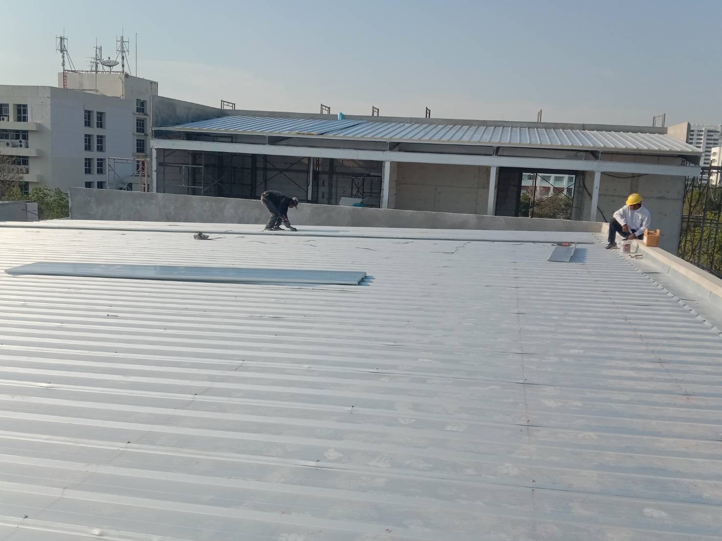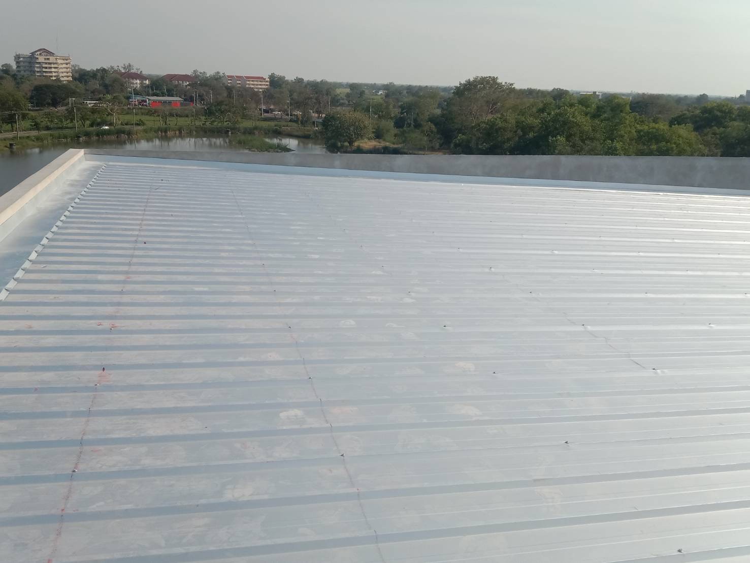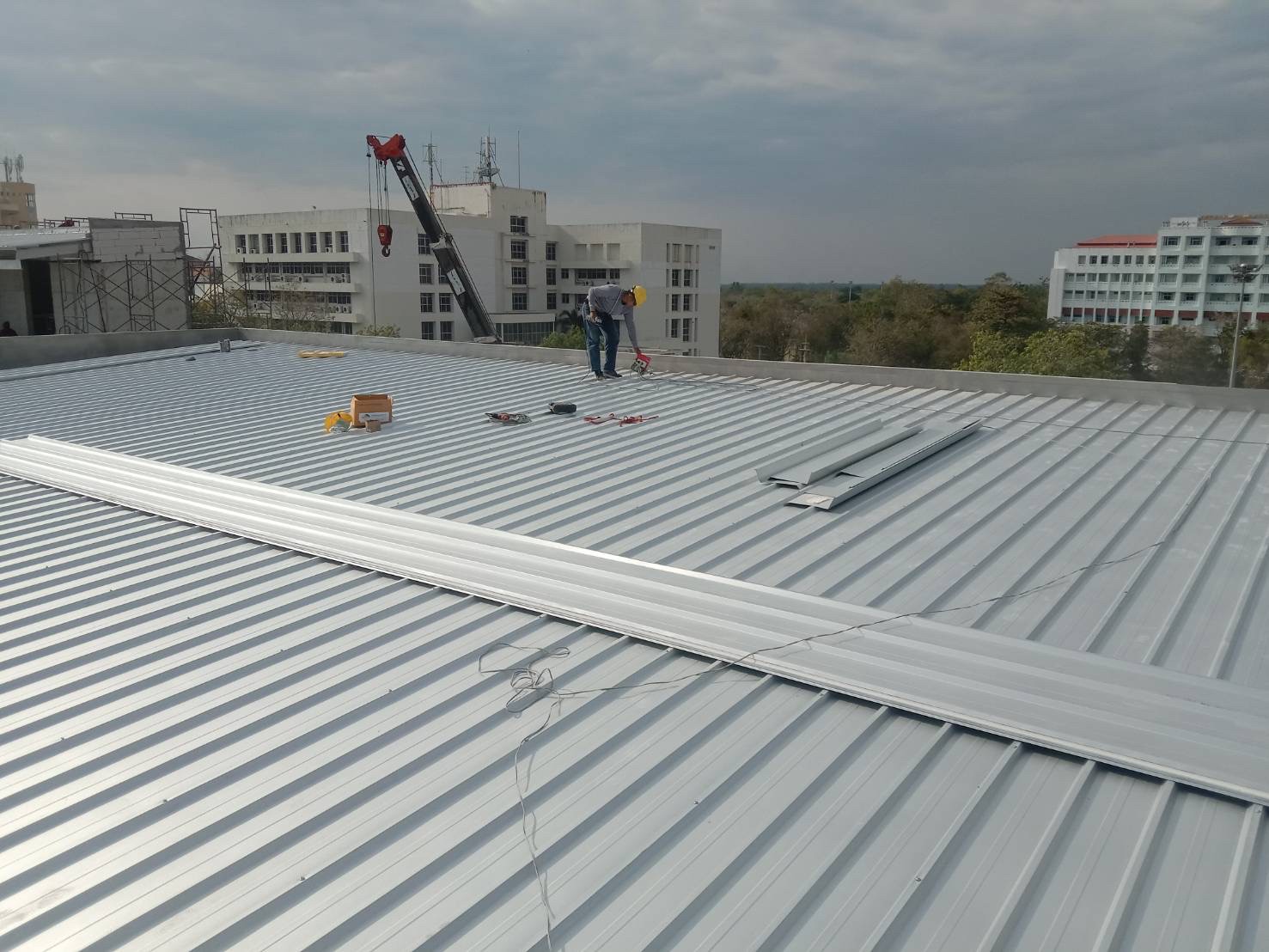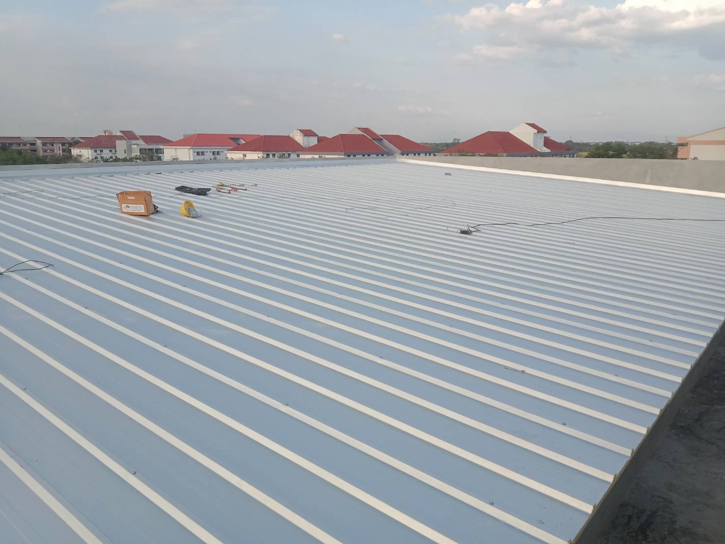 งานมุงหลังคาสังกะสีรองโฟม 350 ตร.ม. หน้างาน มศว.องค์รักษ์