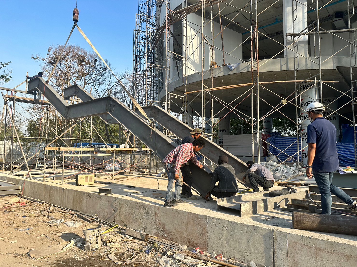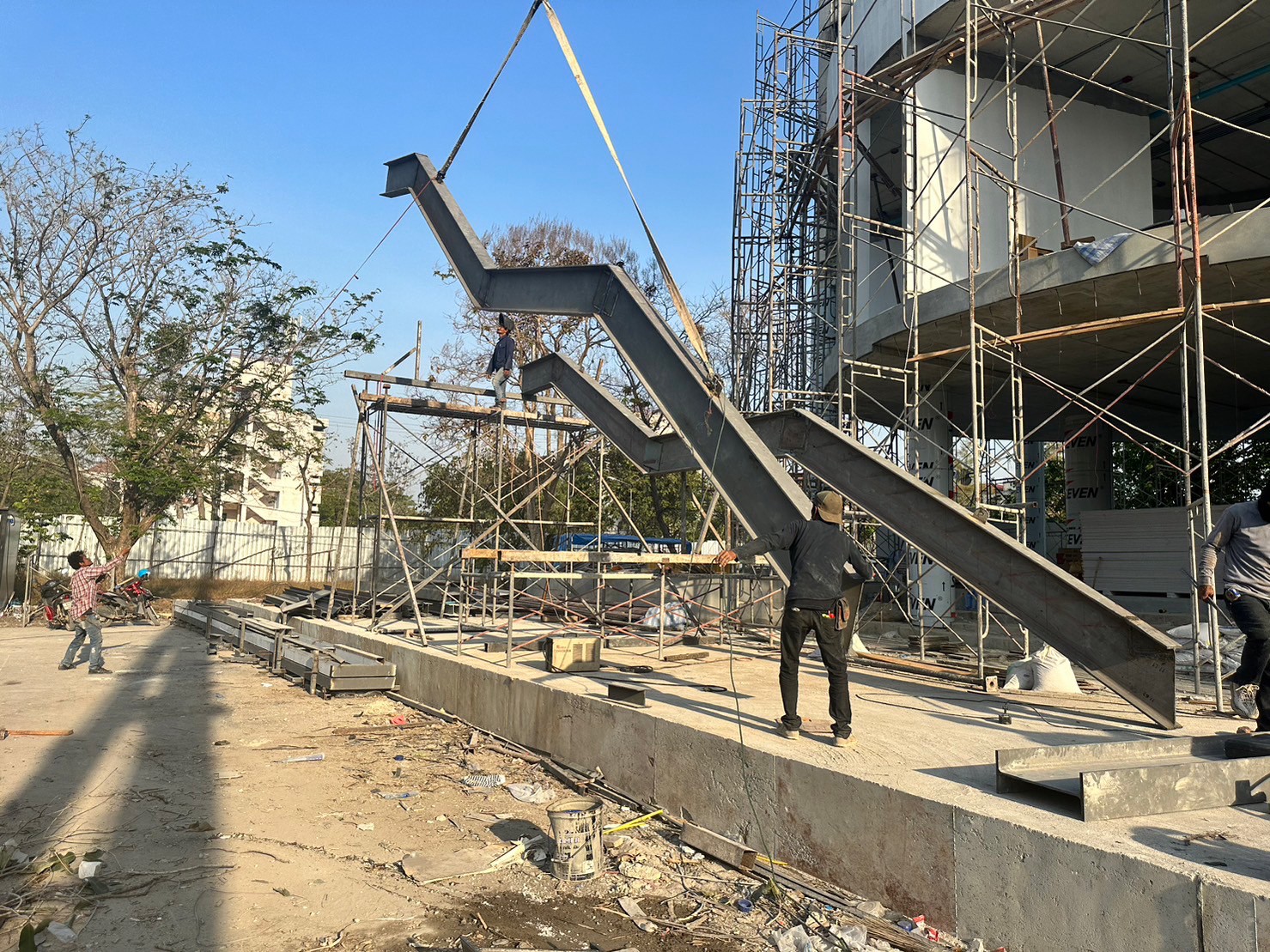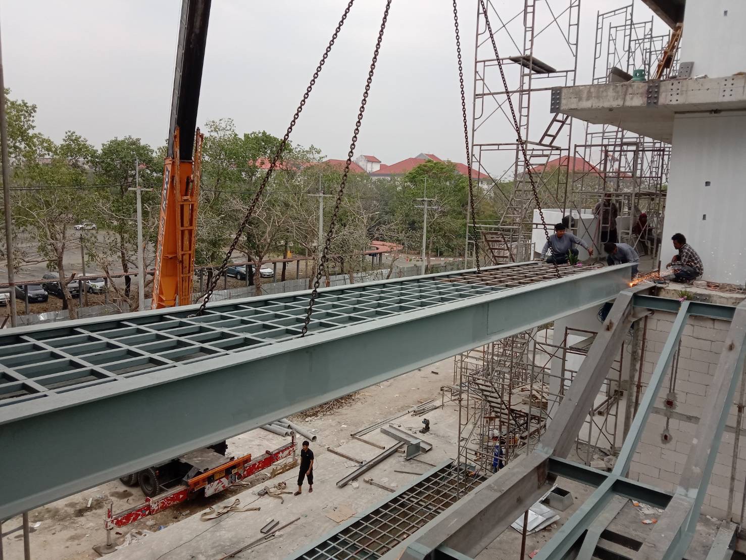 โครงบันไดทางเดินเชื่อมอาคาร หน้างาน ม.ศ.ว องค์รักษ์