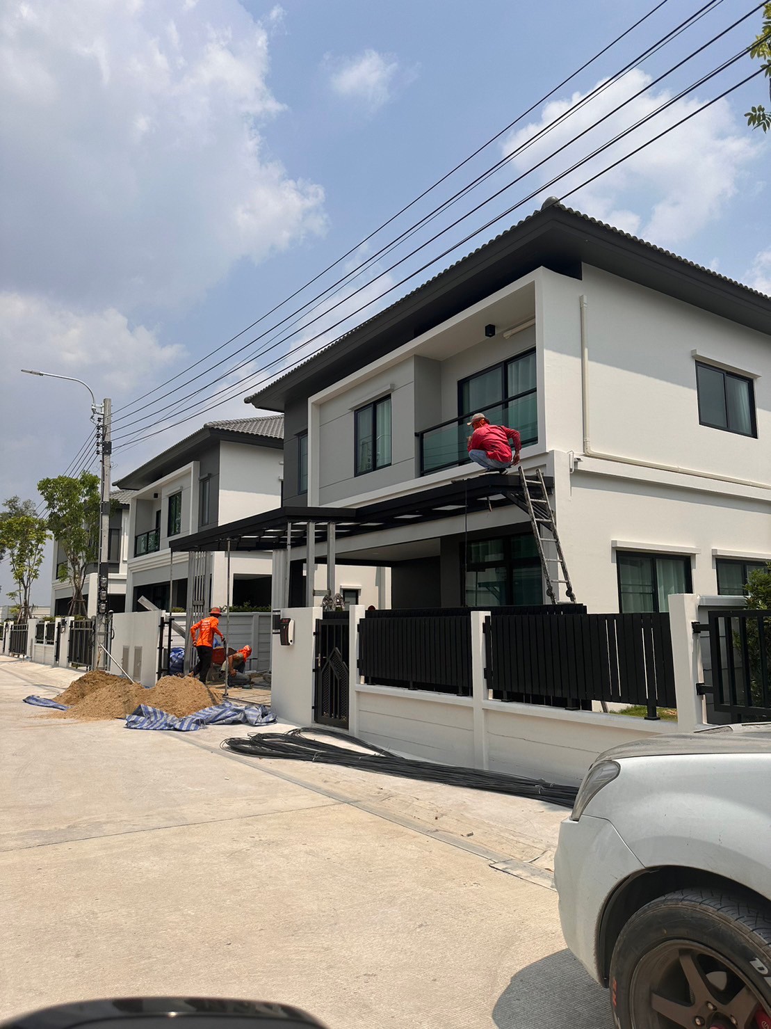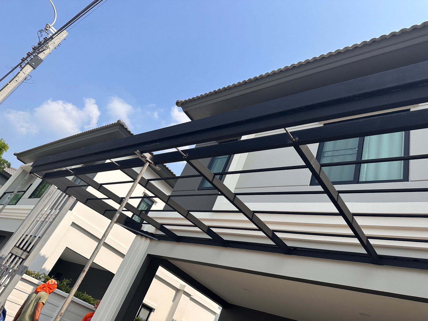 จัดสร้างโครงหลังคาที่จอดรถหน้าบ้านโครงการแกรนด์ บริทาเนีย วงแหวน - รามอินทรา