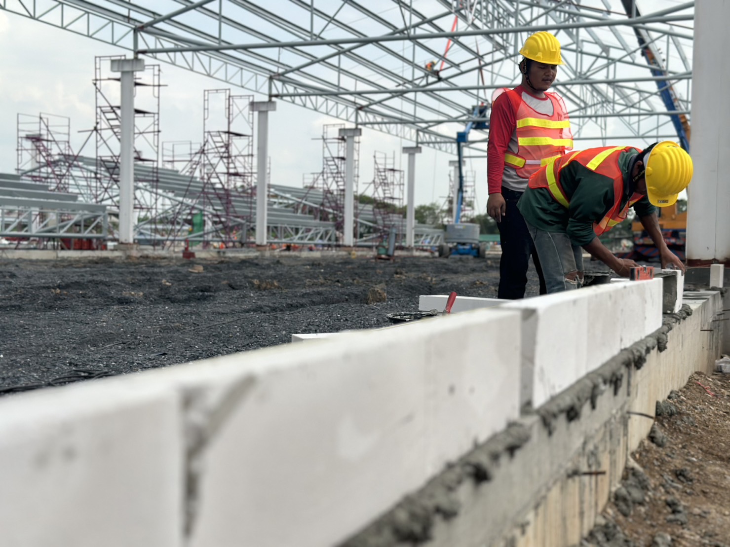 งานก่อสร้างก่อฉาบโกดังสินค้า พื้นที่ 3,500 ตร.ม. หน้างานจังหวัดสระบุรี