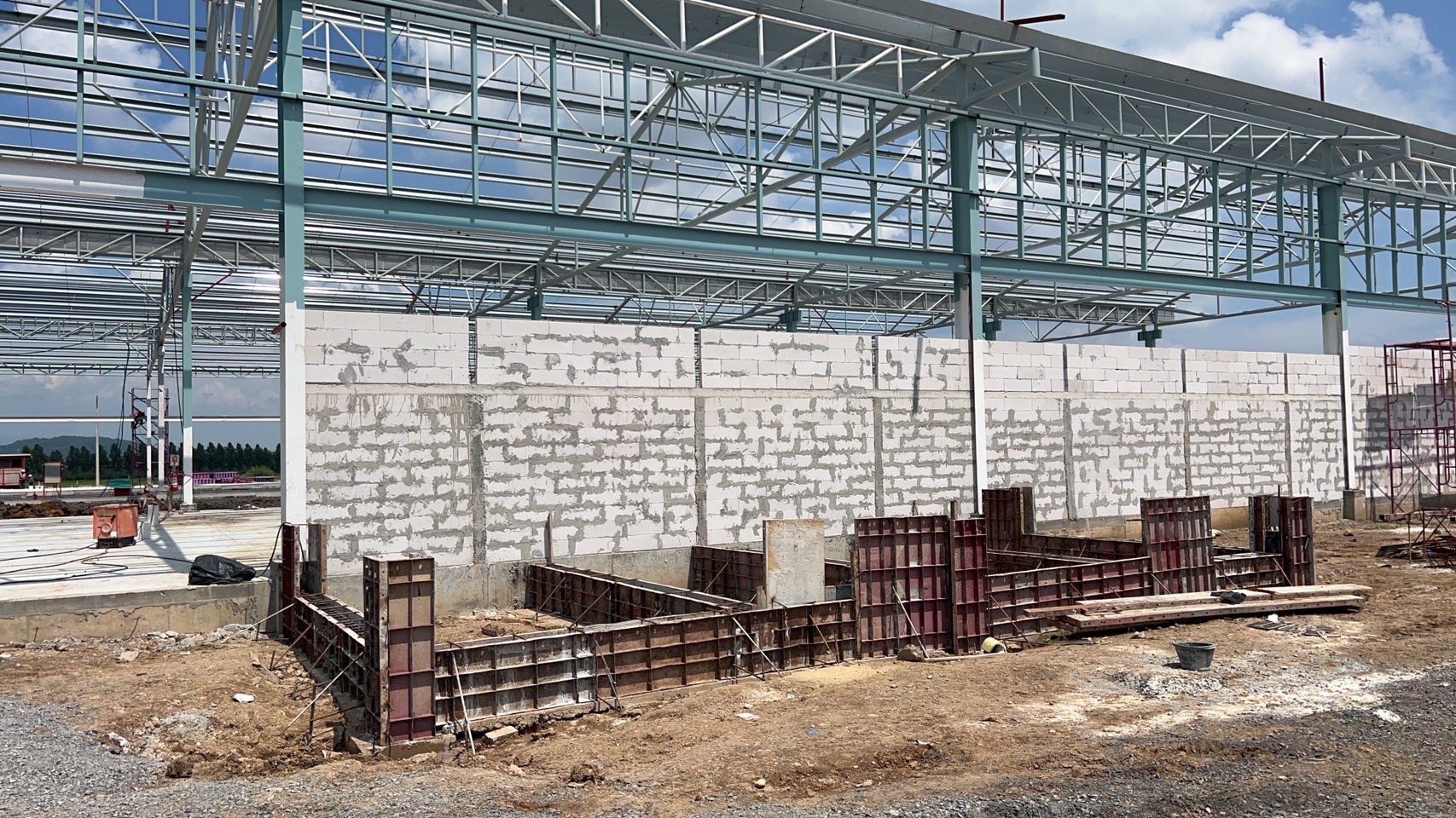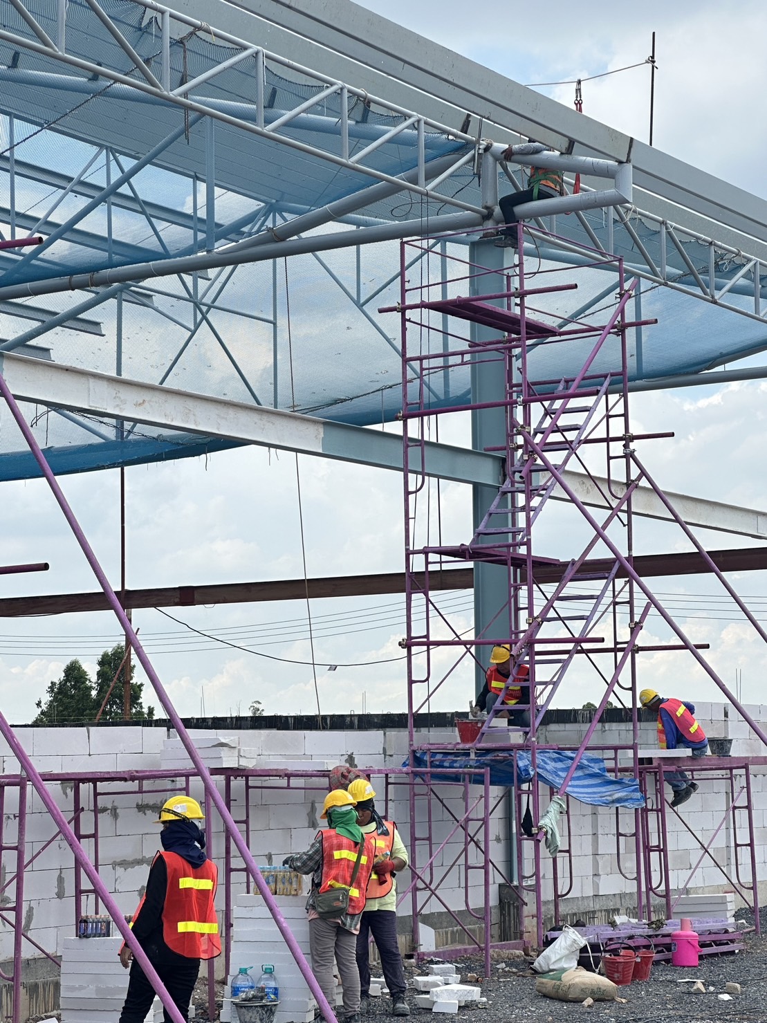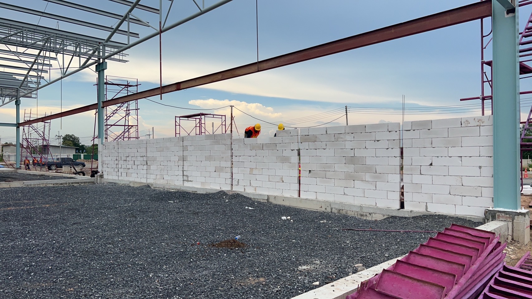 ผลงานก่ออิฐมวลเบา เทเอ็น/ทับหลัง ก่อนฉาบห้างานโรงงานจังหวัดสระบุรี