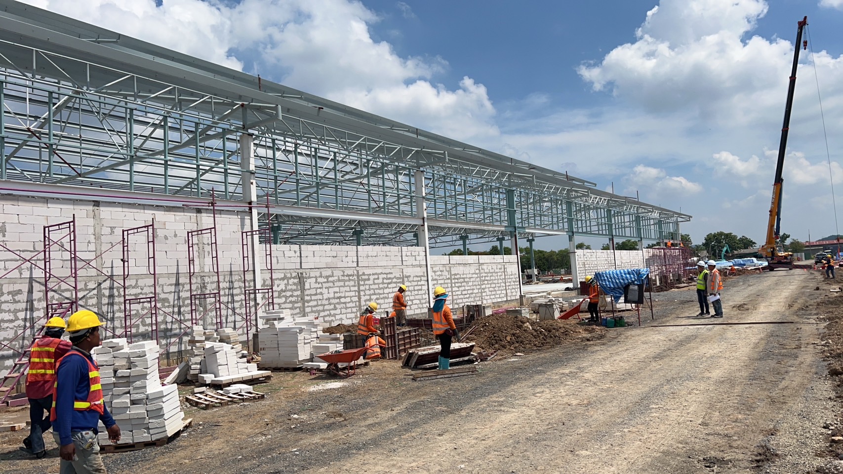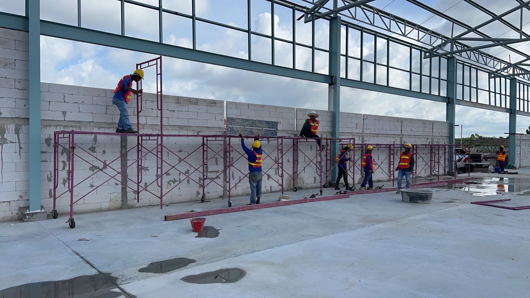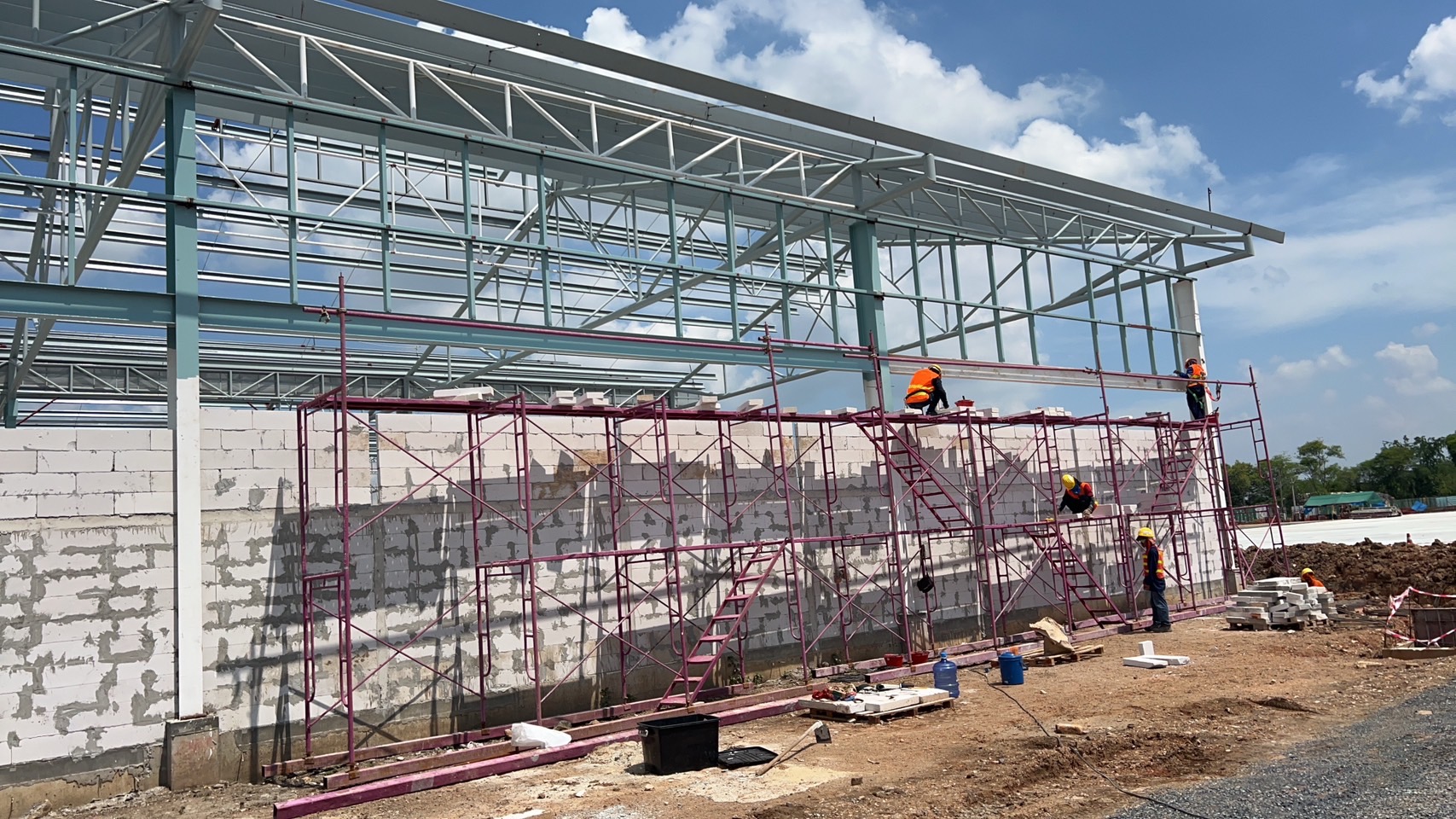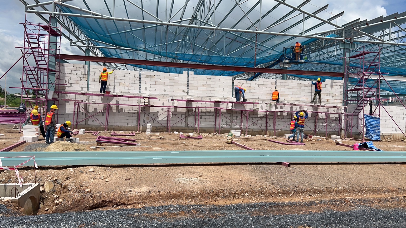 ผลงานก่ออิฐมวลเบา เทเอ็น/ทับหลัง ก่อนฉาบห้างานโรงงานจังหวัดสระบุรี
