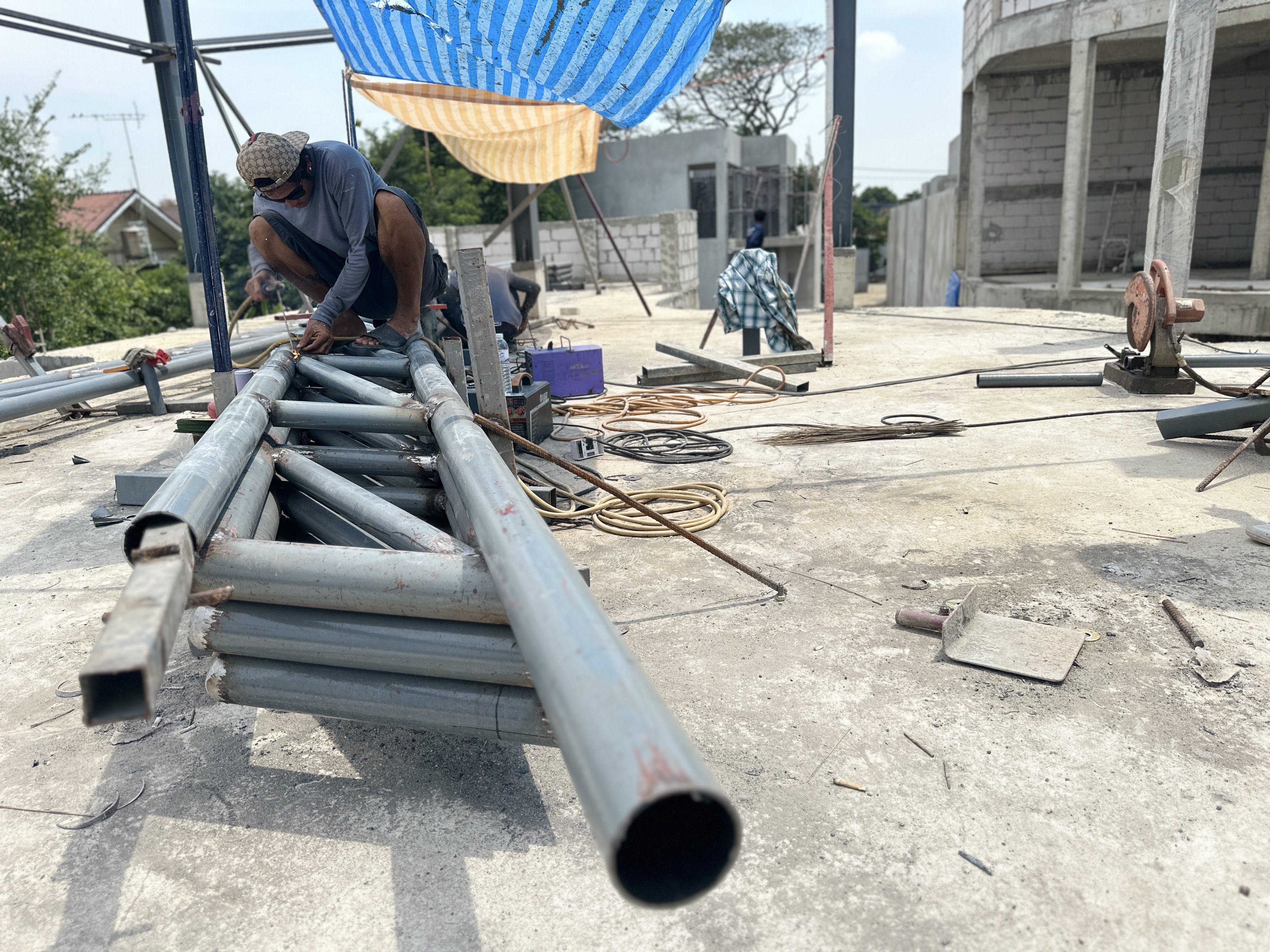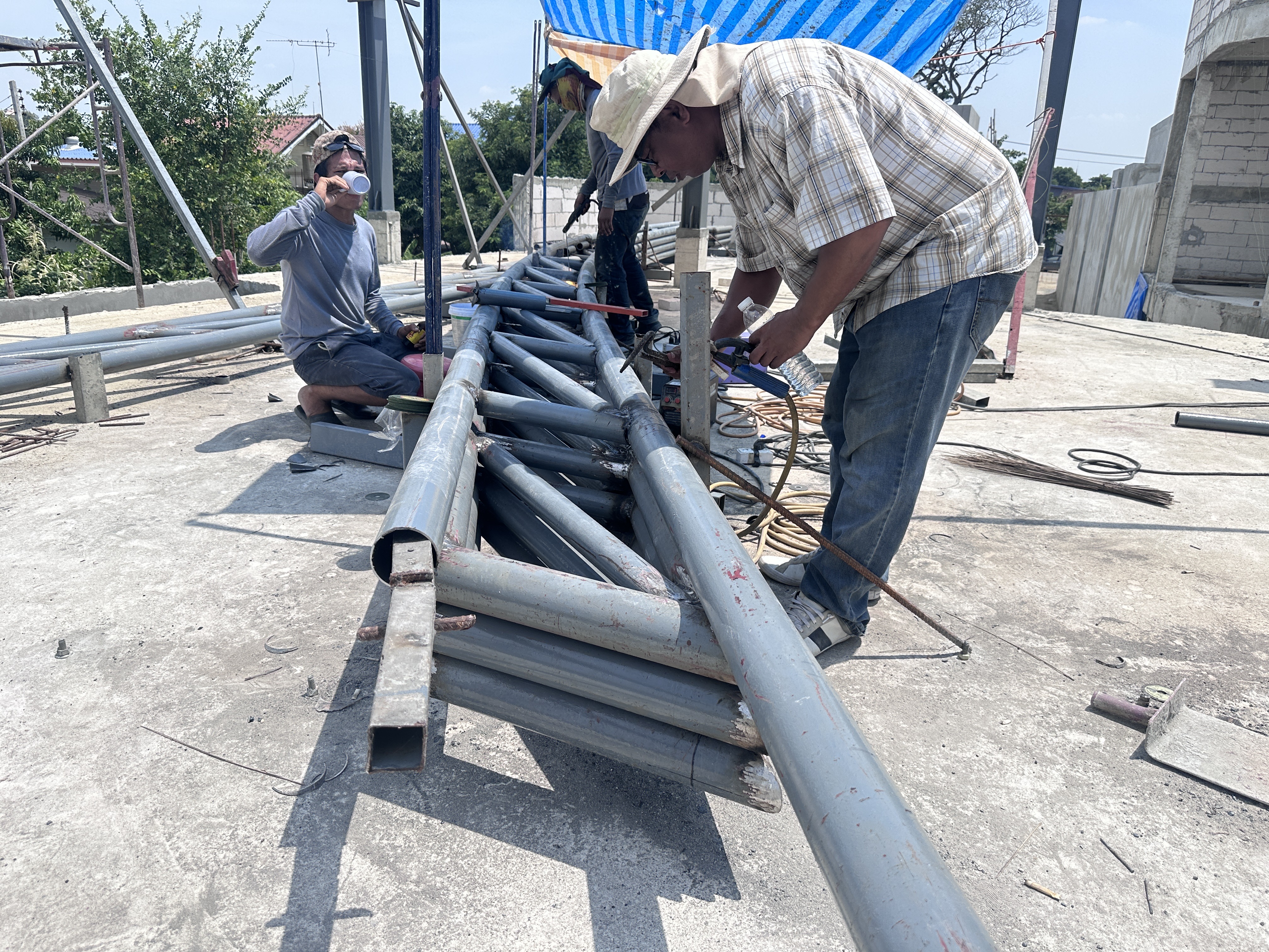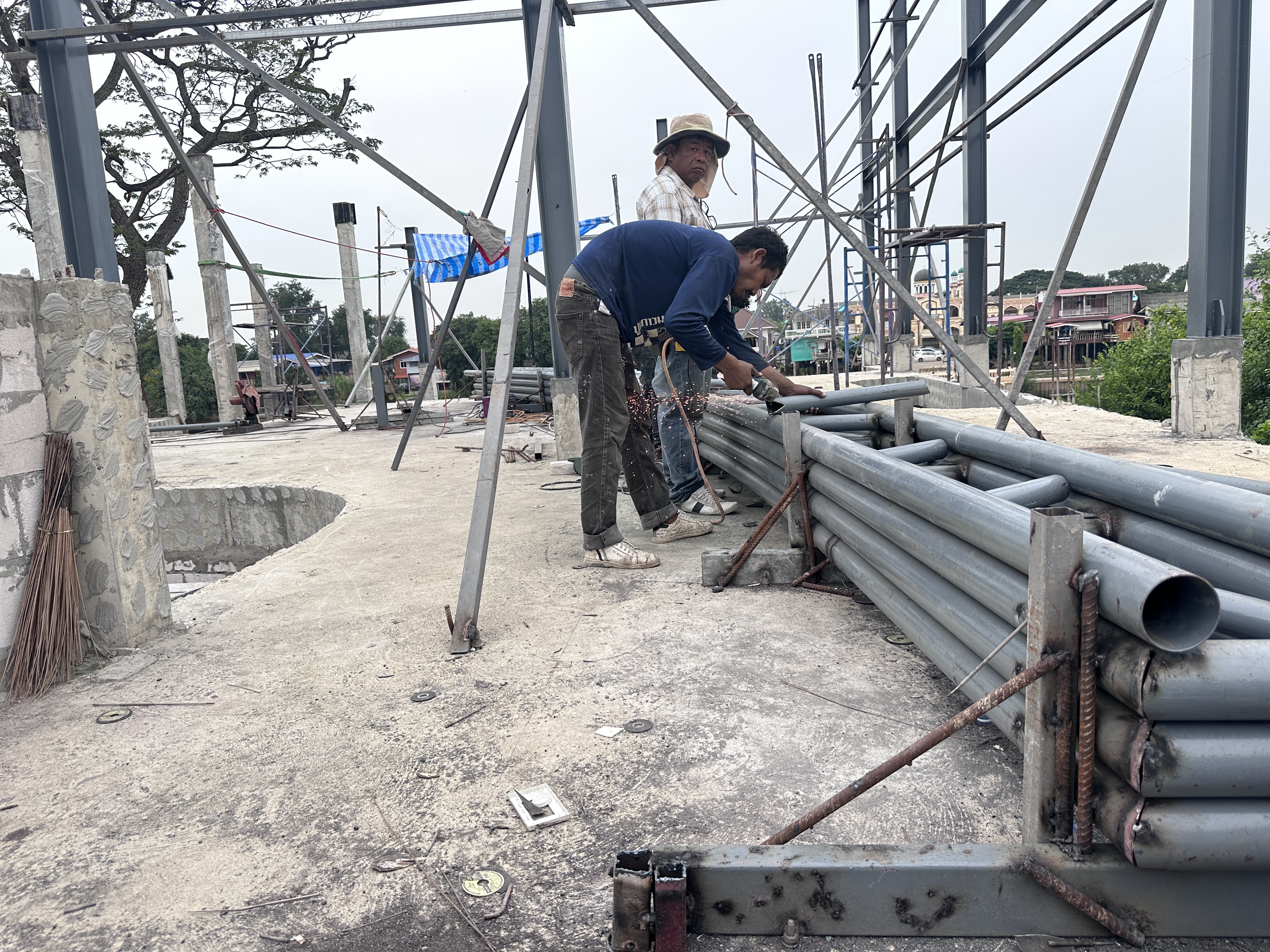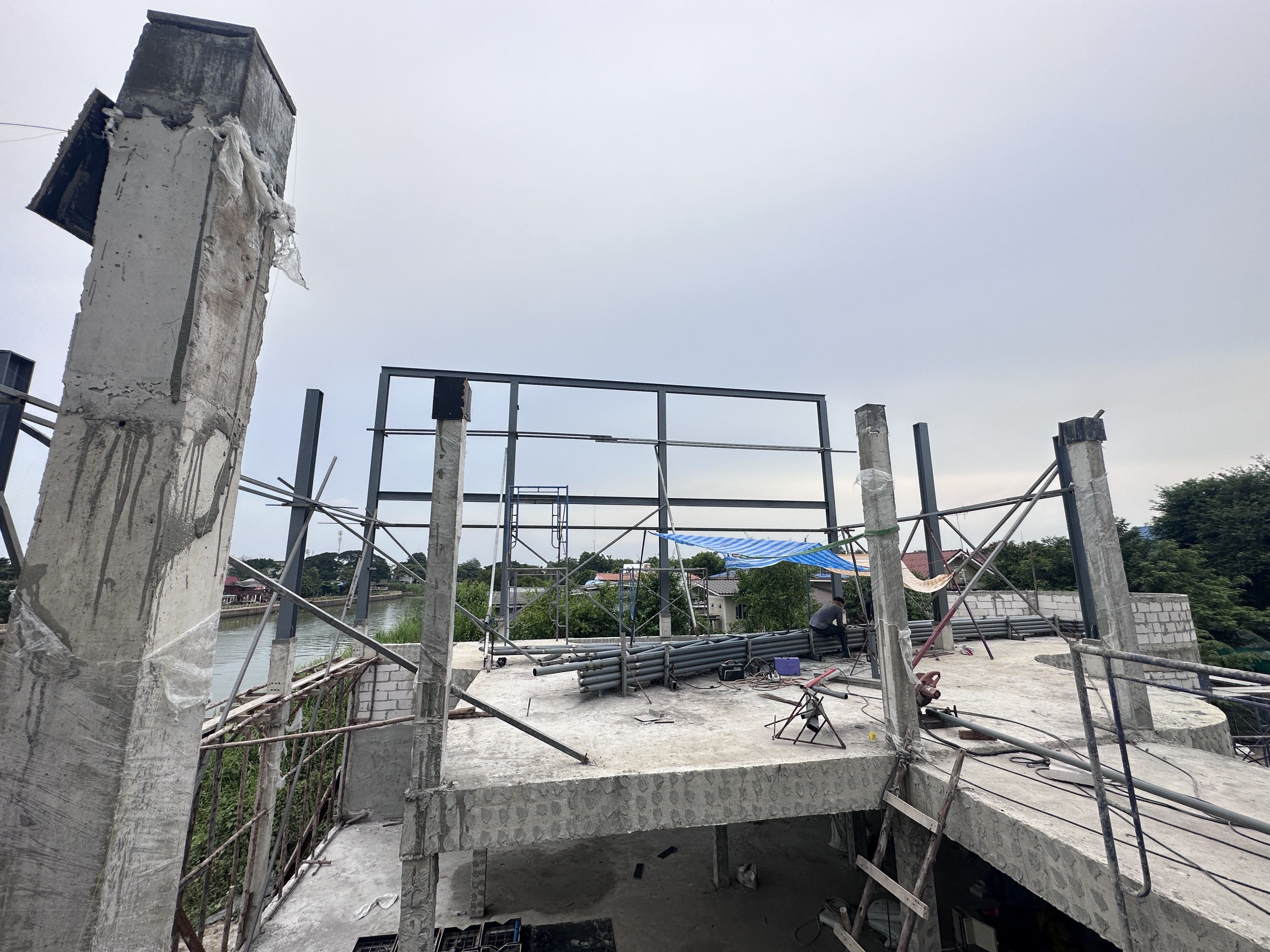 งานต่อเติมโครงสร้างเหล็ก เสริมโครงเหล็กทรัช หน้างานจังหวัดพระนครศรีอยุธยา