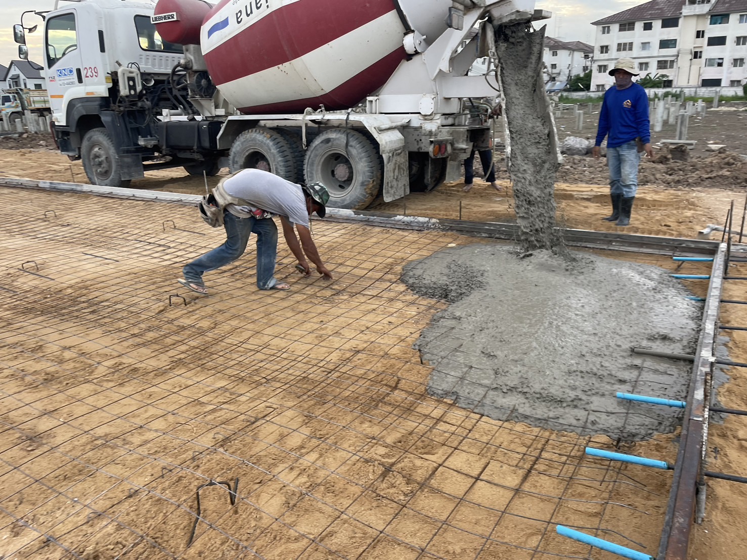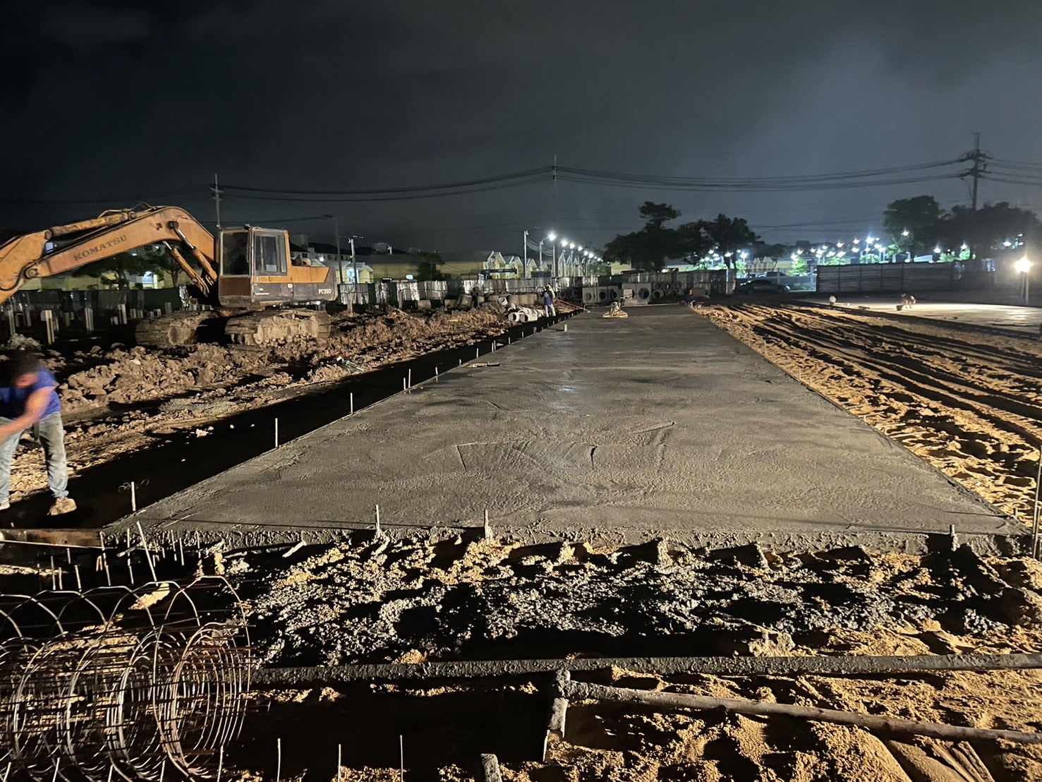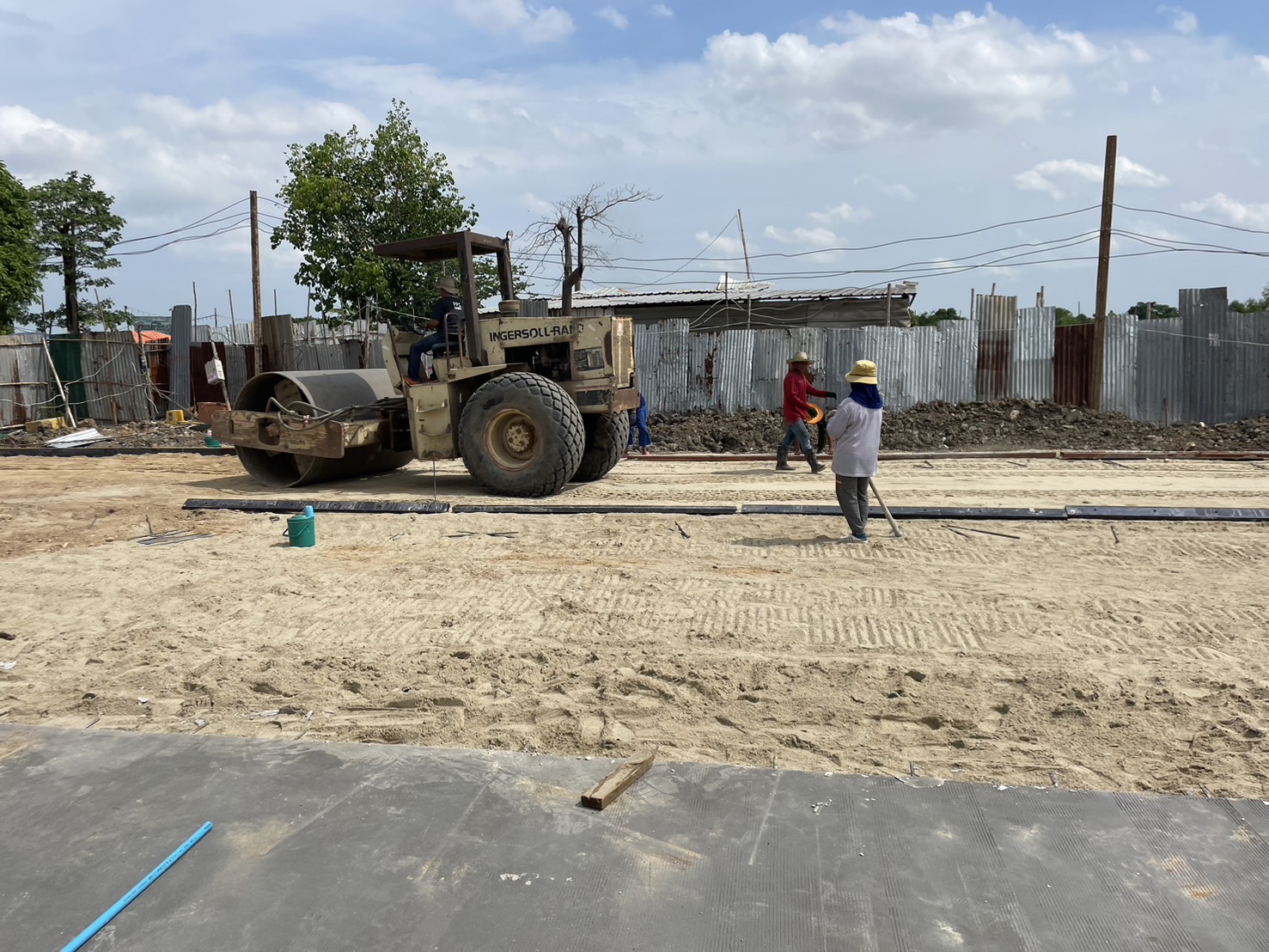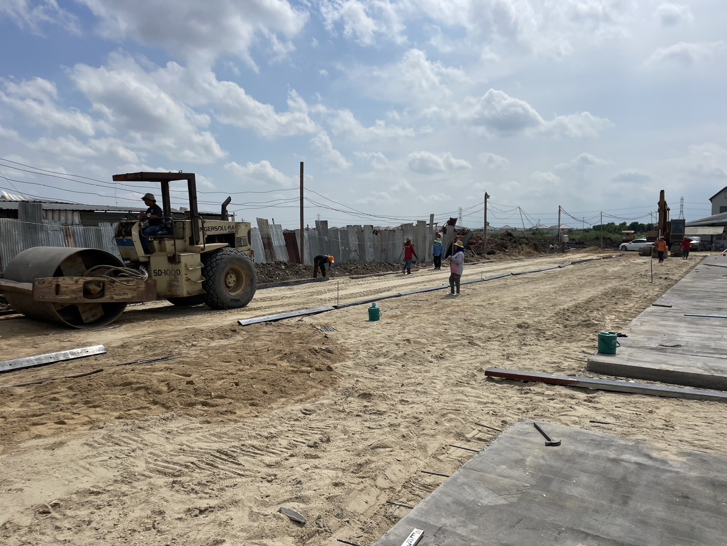 งานปรับสภาพหน้าดินและเตรียมอัดพื้นผิวและเทคอนกรีตสำเร็จ