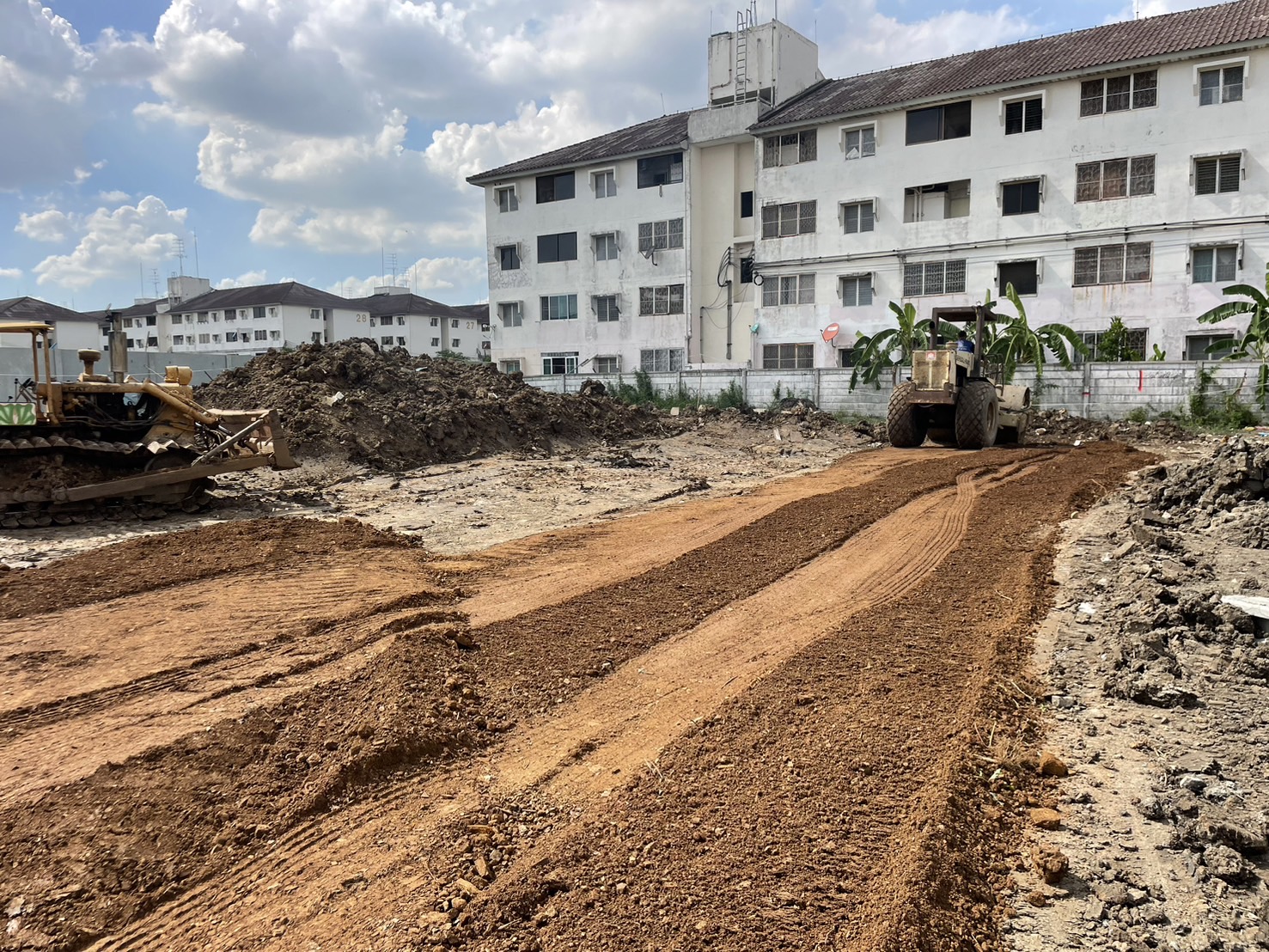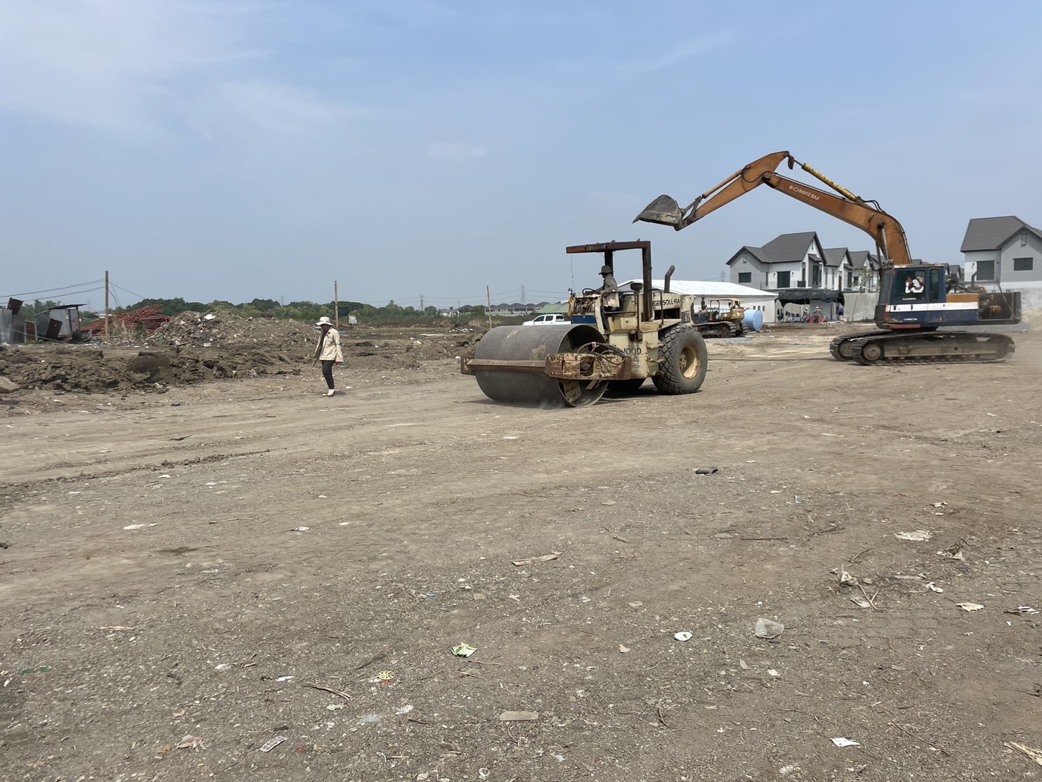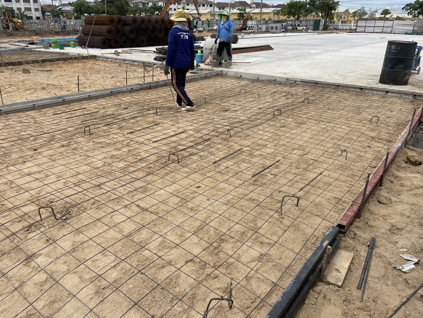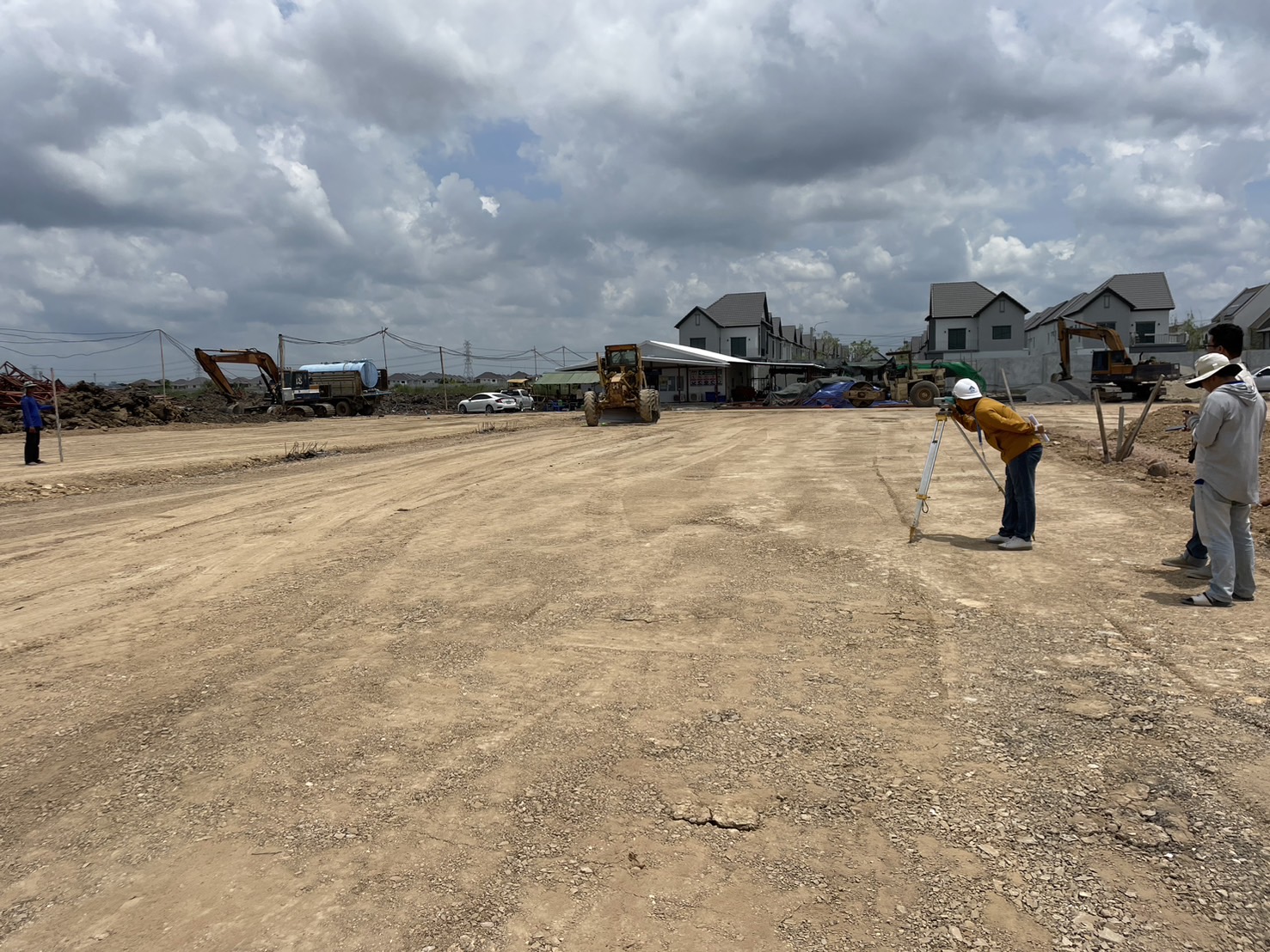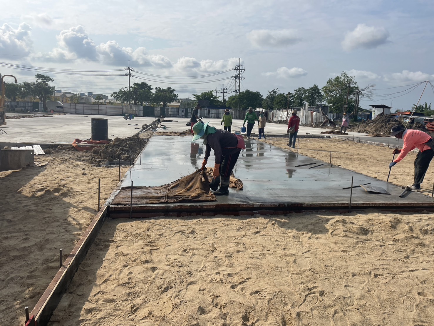 งานปรับสภาพหน้าดินและเตรียมอัดพื้นผิวและเทคอนกรีตสำเร็จ