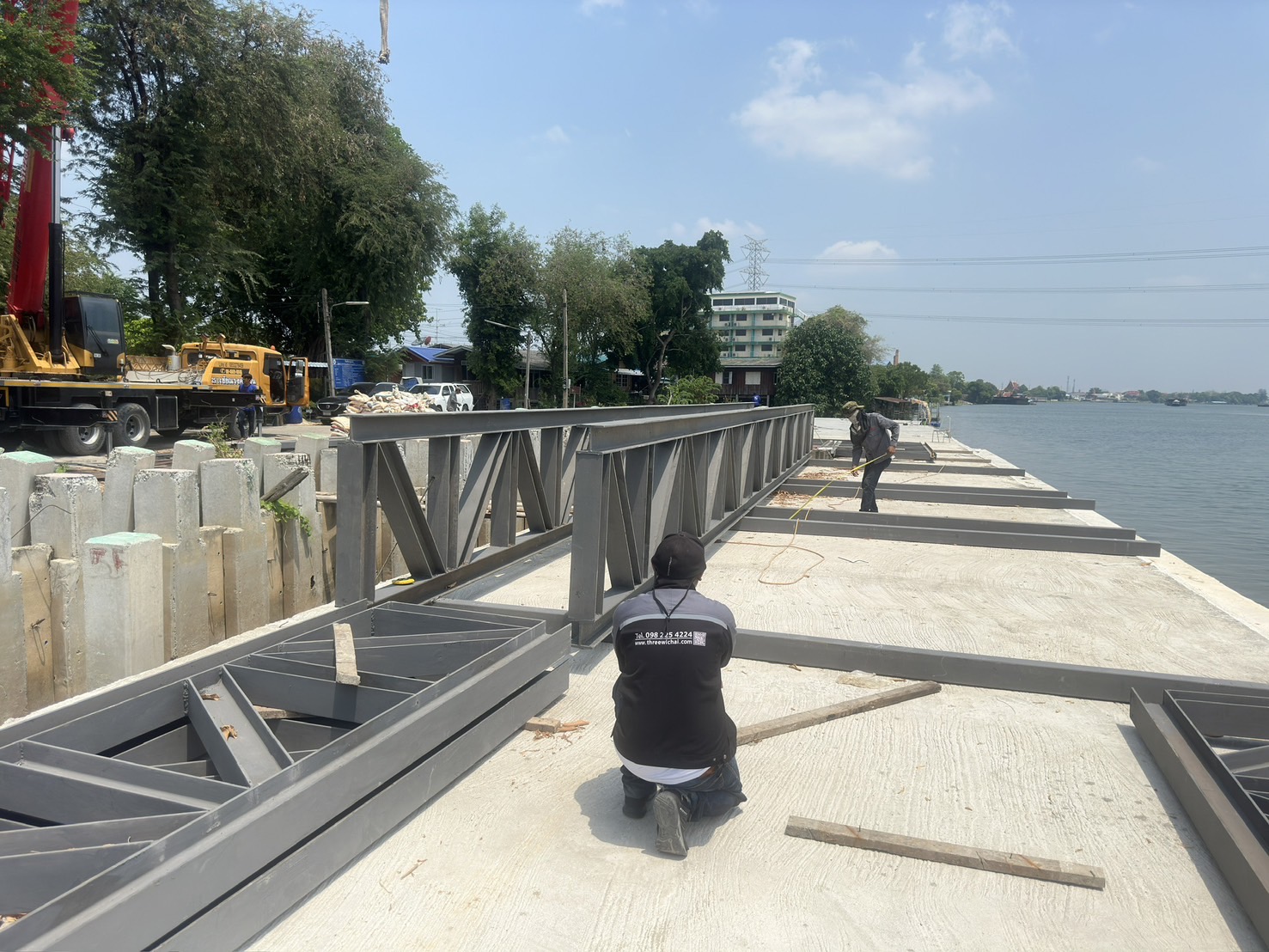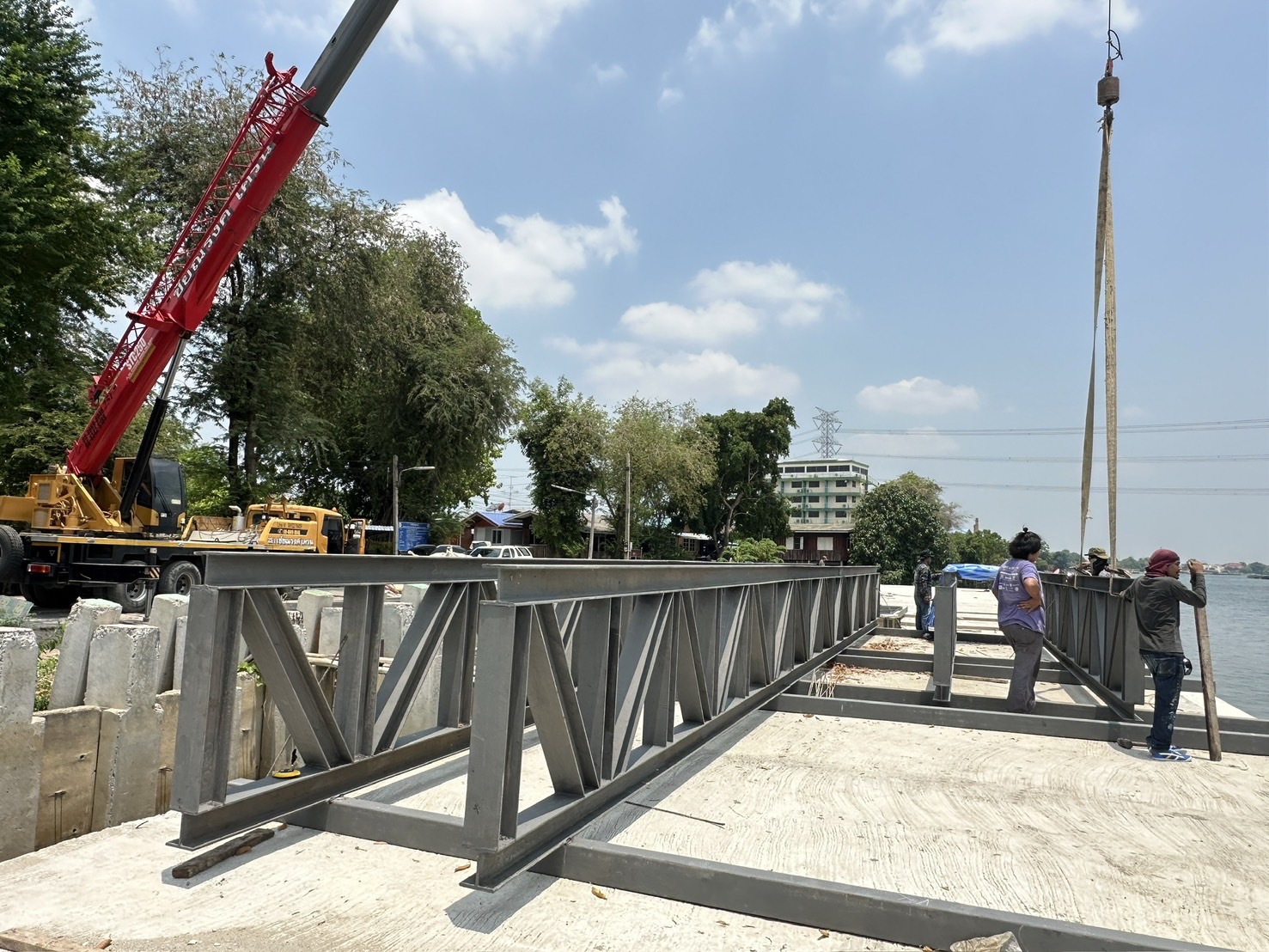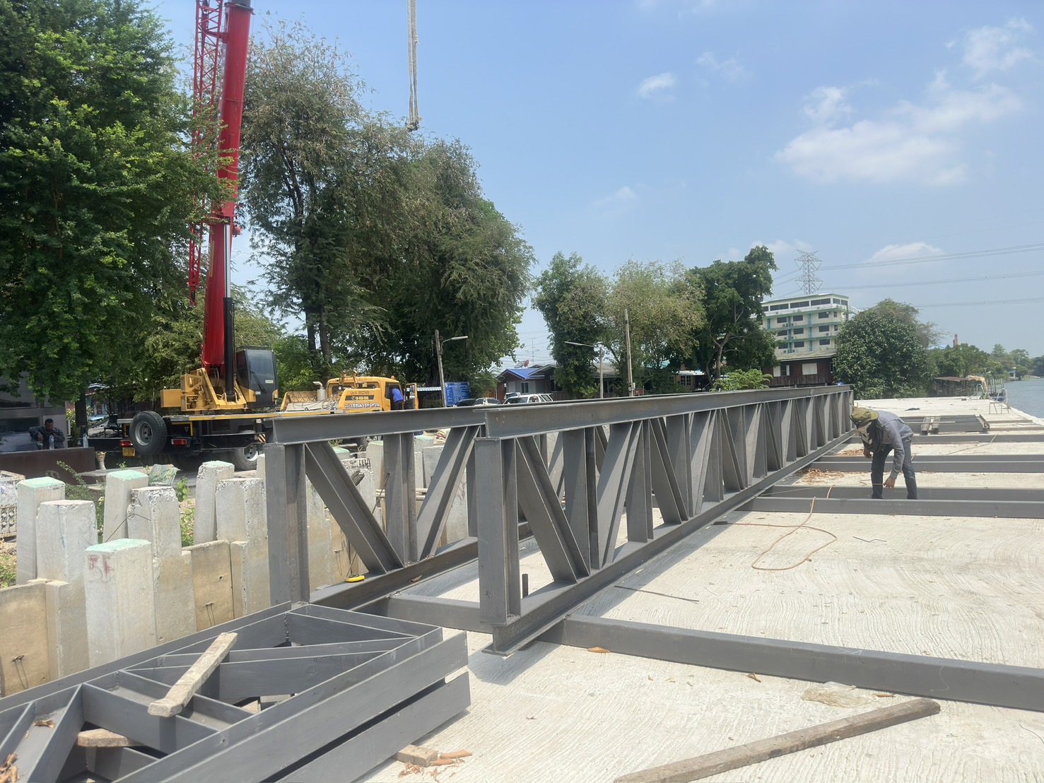 งานประกอบทรัสเสริมฐานสะพานข้ามคลอง ความยาว 16 เมตร ประกอบสำเร็จพร้อมต่องาน