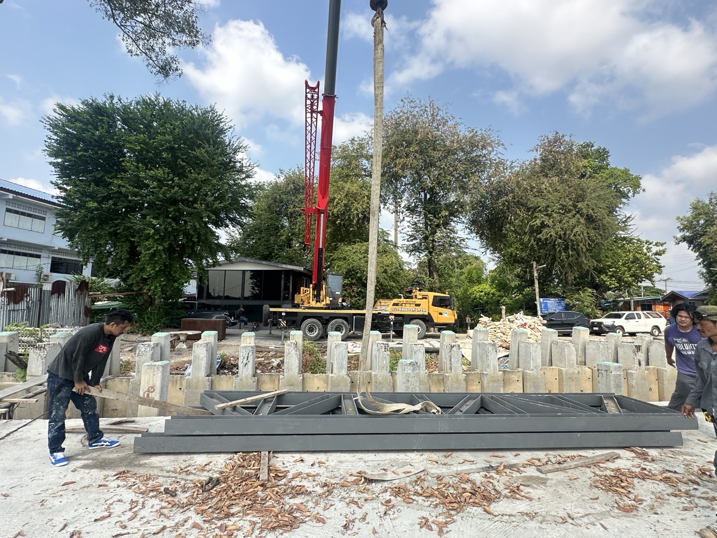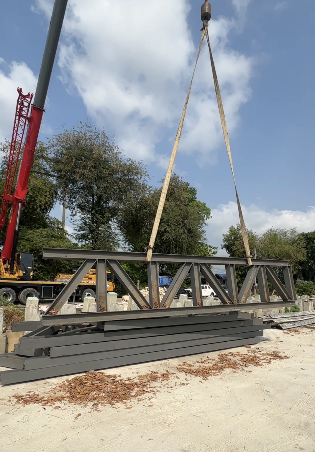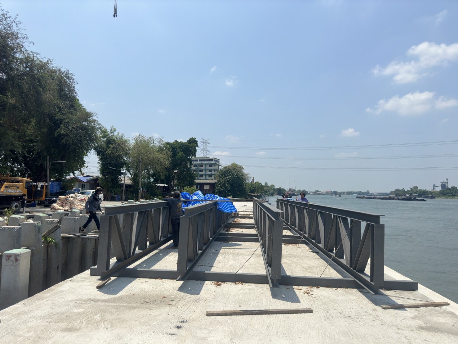 งานประกอบทรัสเสริมฐานสะพานข้ามคลอง ความยาว 16 เมตร ประกอบสำเร็จพร้อมต่องาน