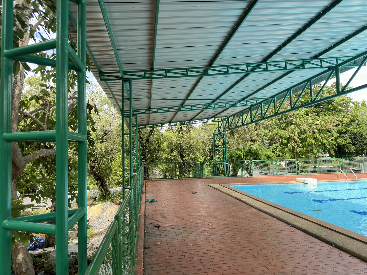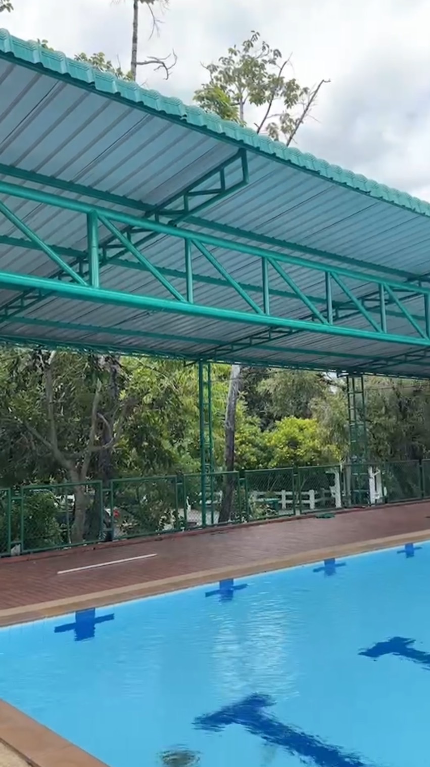 ส่งมอบงานแล้วเสร็จงานโครงเหล็กรูปพรรณพร้อมติดตั้งมุงหลังคา บริเวณสระว่ายน้ำ