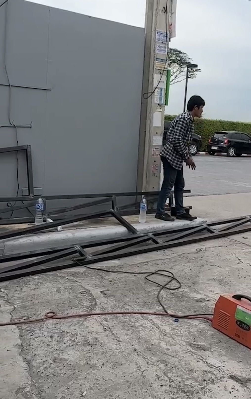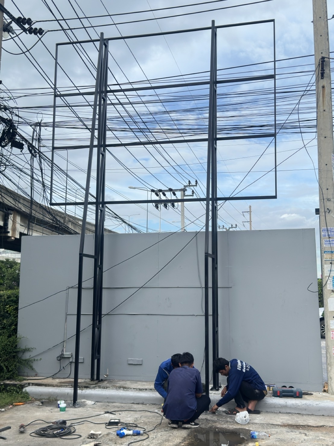 งานติดตั้งโครงเหล็กรูปพรรณเหล็กขนาด 2*2 ขึ้นโครงรับจอ LED